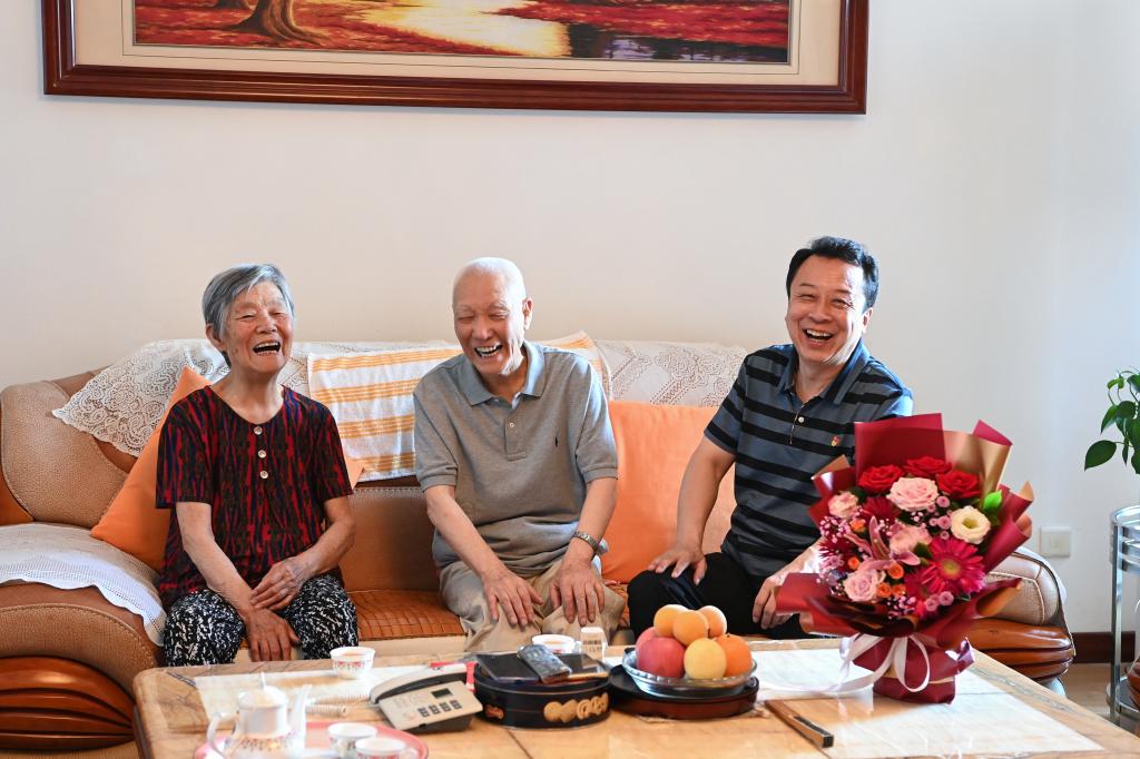 在88岁老干部张明清家中,党委书记王新淮与张明清同志亲切交谈,王新淮书记谈到,“学校的发展凝结着你们上一代共产党人的奋斗心血,离不开你们老同志们打下的良好基础,希望老党员、老干部们继续发挥优势,为学校的发展建言献策”。在95岁老干部尹瑚家中,党委副书记、校长赵丽生和尹瑚同志促膝交谈,拉家常、说变化、忆党恩、叙发展,一起回忆在学校工作奋斗的情形,并祝福尹瑚同志身体健康。