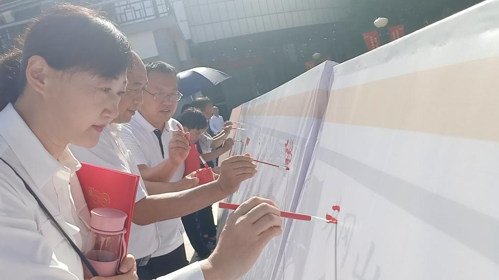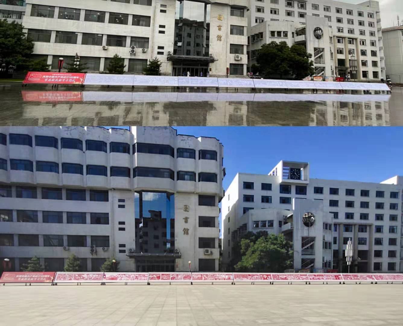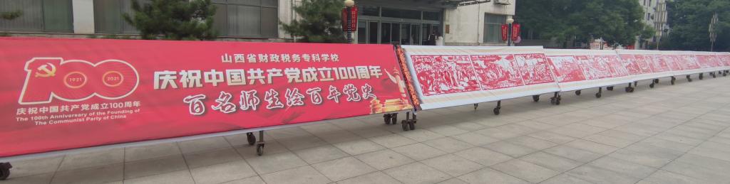 活动在在青年广场举行。近50米长的绘板自西向东一字排列,场面蔚为壮观。绘板以时间为叙事线索,以双色剪纸画为底图,以油彩创作的形式展现建党百年以来的重大历史事件,讲述了中国共产党波澜壮阔的百年历程,吸引了广大党员干部、师生员工的驻足关注和积极参与。