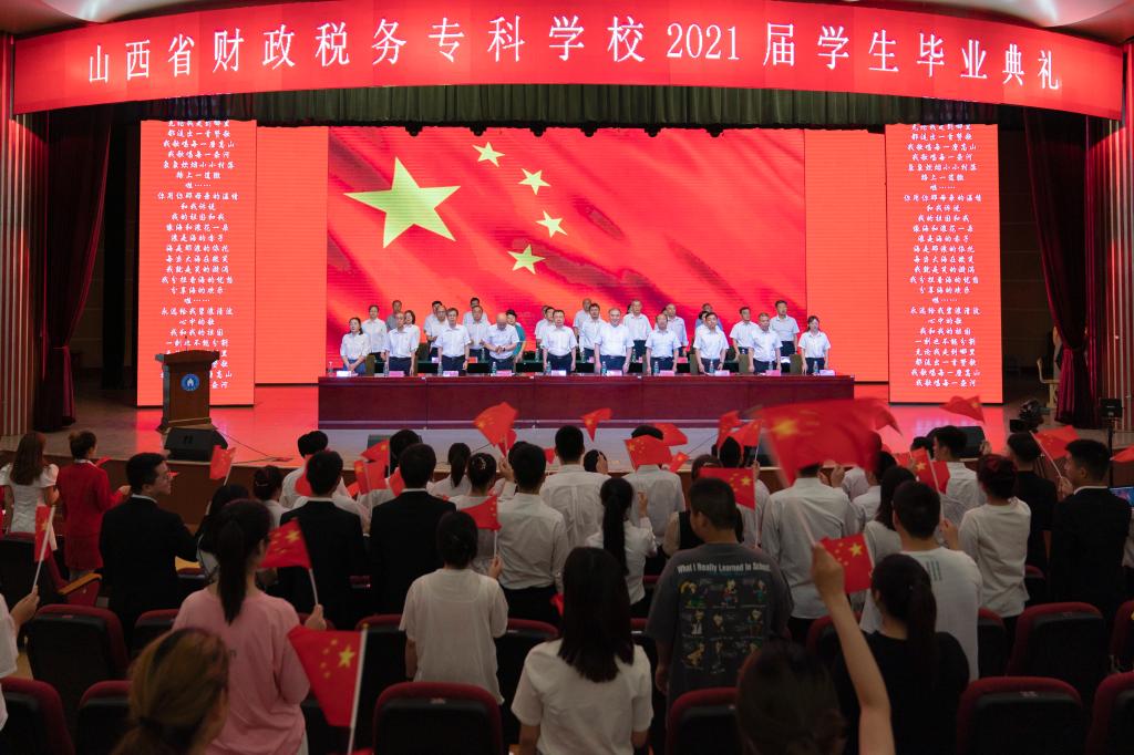 毕业典礼接近尾声,与会老师和毕业生起立,高唱《我和我的祖国》,用嘹亮的歌声表达了全体师生对伟大祖国的美好祝福。最后,毕业生们在老师们的热烈掌声中,带着学校和师长的殷切嘱托踏上了新的旅程。