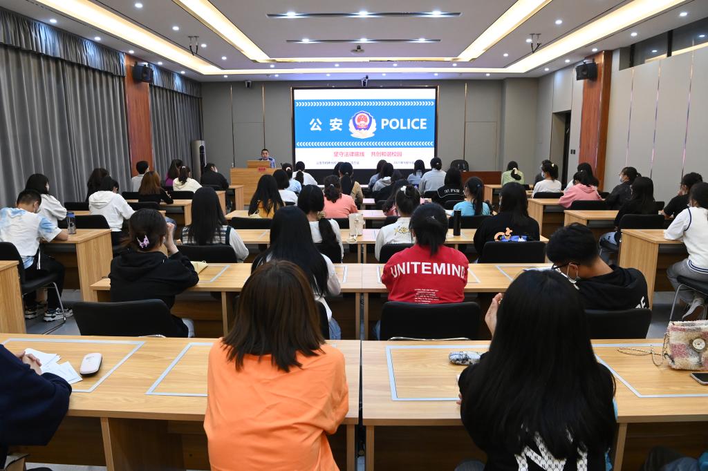 雷志斌警官以《坚守法律底线 共创和谐校园》为题, 围绕侵害人身安全的违法犯罪行为、侵犯财产安全类违法犯罪行为、证件与银行卡类违法犯罪行为、黄赌毒违法犯罪行为、侵害社会秩序类违法犯罪行为、“套路贷”借款陷阱等方面法律知识进行讲解,列举了众多发生在大学生身边的真实案例,以案释法,提高学生们辨别和应对危险的能力,增强大学生树立遵纪守法的意识。最后,雷警官就大学生如何运用法律保护自身合法权益进行了指导。