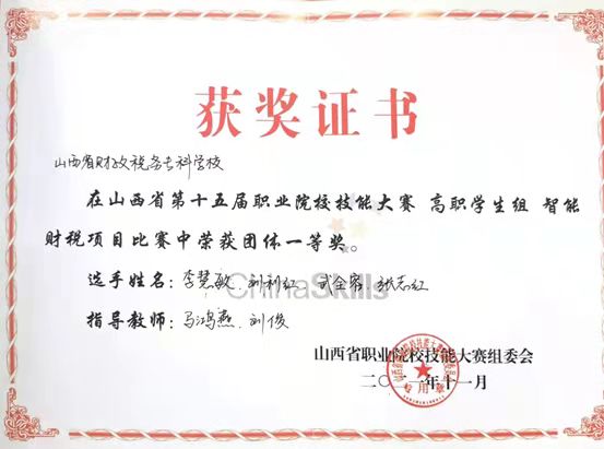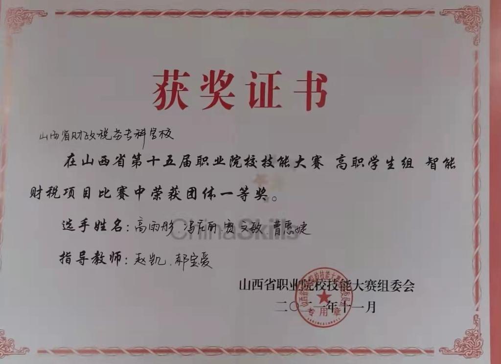 bat365在山西省第十五届职业院校技能大赛 智能财税赛项中斩获佳绩