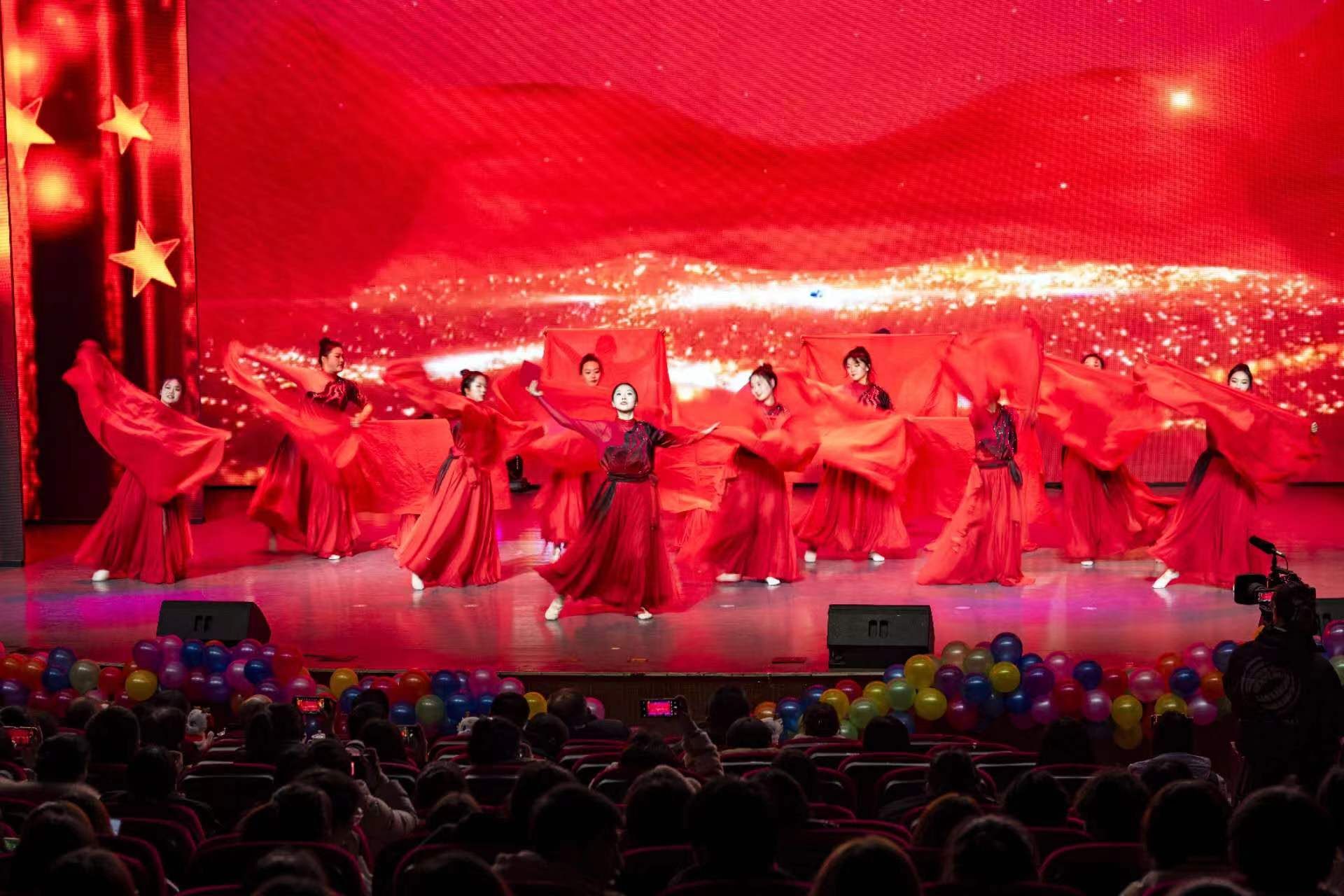 晚会在舞蹈《花开中国年》中拉开帷幕,舞蹈《红灯笼》《醉春风》《元夕》和《入画江南》翩跹而舞,将轻盈灵动与清新典雅完美结合,美轮美奂。舞蹈《觉醒年代》《红色追梦人》引领我们重温当年坚定如磐的革命信仰。朗诵《阿土列尔》讴歌了党的十八大以来,以习近平同志为核心的党中央把人民对美好生活的向往作为始终不渝的奋斗目标。合唱《我的未来不是梦》用激情与活力告诉我们只要坚定信心,就一定会圆梦。蒙古舞《博克颂》展现出豁达豪放的民族风采。小品《在那遥远的地方》展示了救死扶伤、甘于奉献的医者精神一定能够战胜一切困难。对唱《我们的时代》、朗诵《盛世中国》和舞蹈《有我》,用肩负时代使命的担当向祖国真挚告白,鼓舞了广大师生。