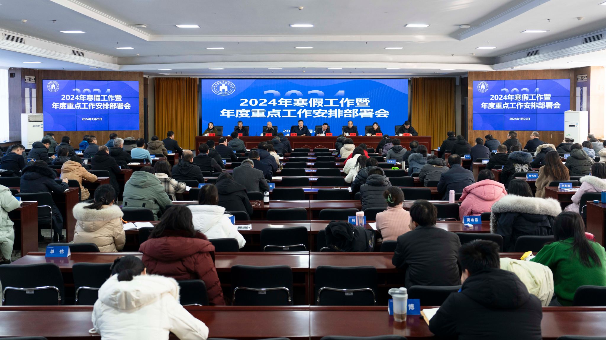 1月25日下午,学校召开2024年寒假工作暨年度重点工作部署会。校领导班子成员出席会议,学校科级以上领导干部参加会议,会议由党委副书记杨晓明主持。