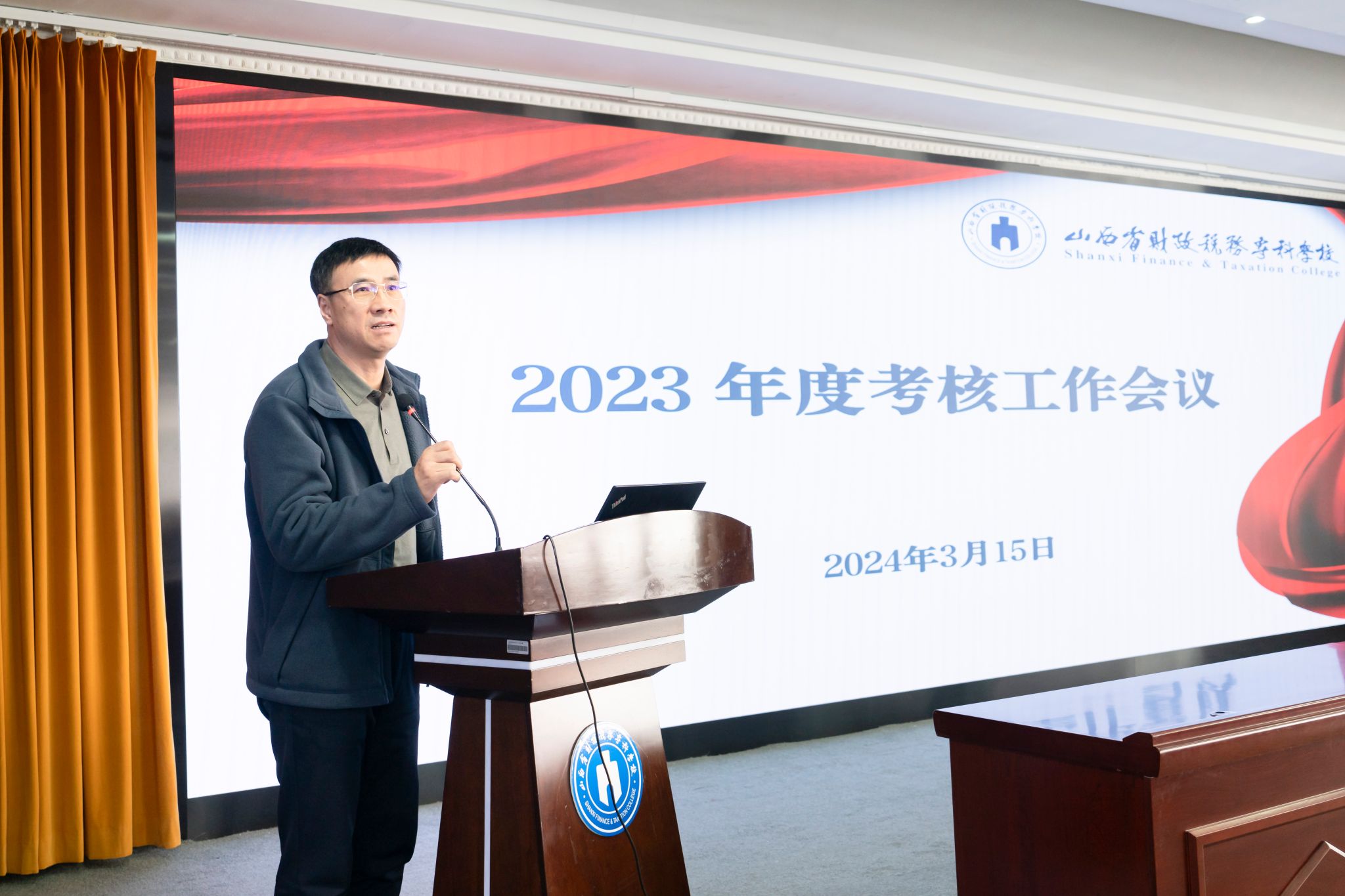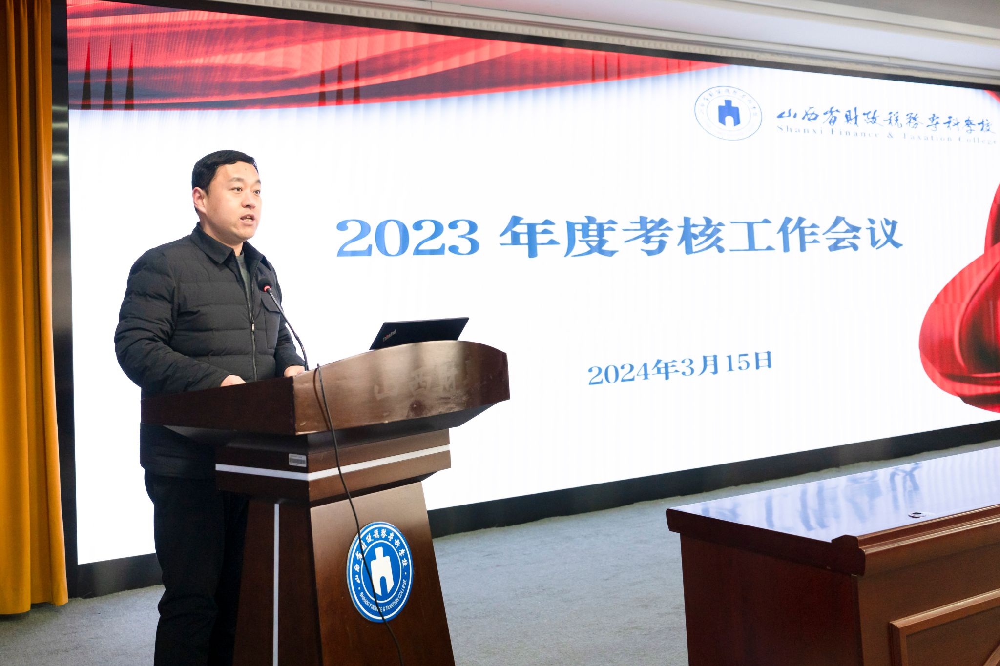 3月15日,bat365在1号教学楼7层会议室举行2023年度部门述职考核评议会。在校党政领导班子成员、中层干部、教师代表参加会议。会议由党委副书记、校长李赟鹏主持。