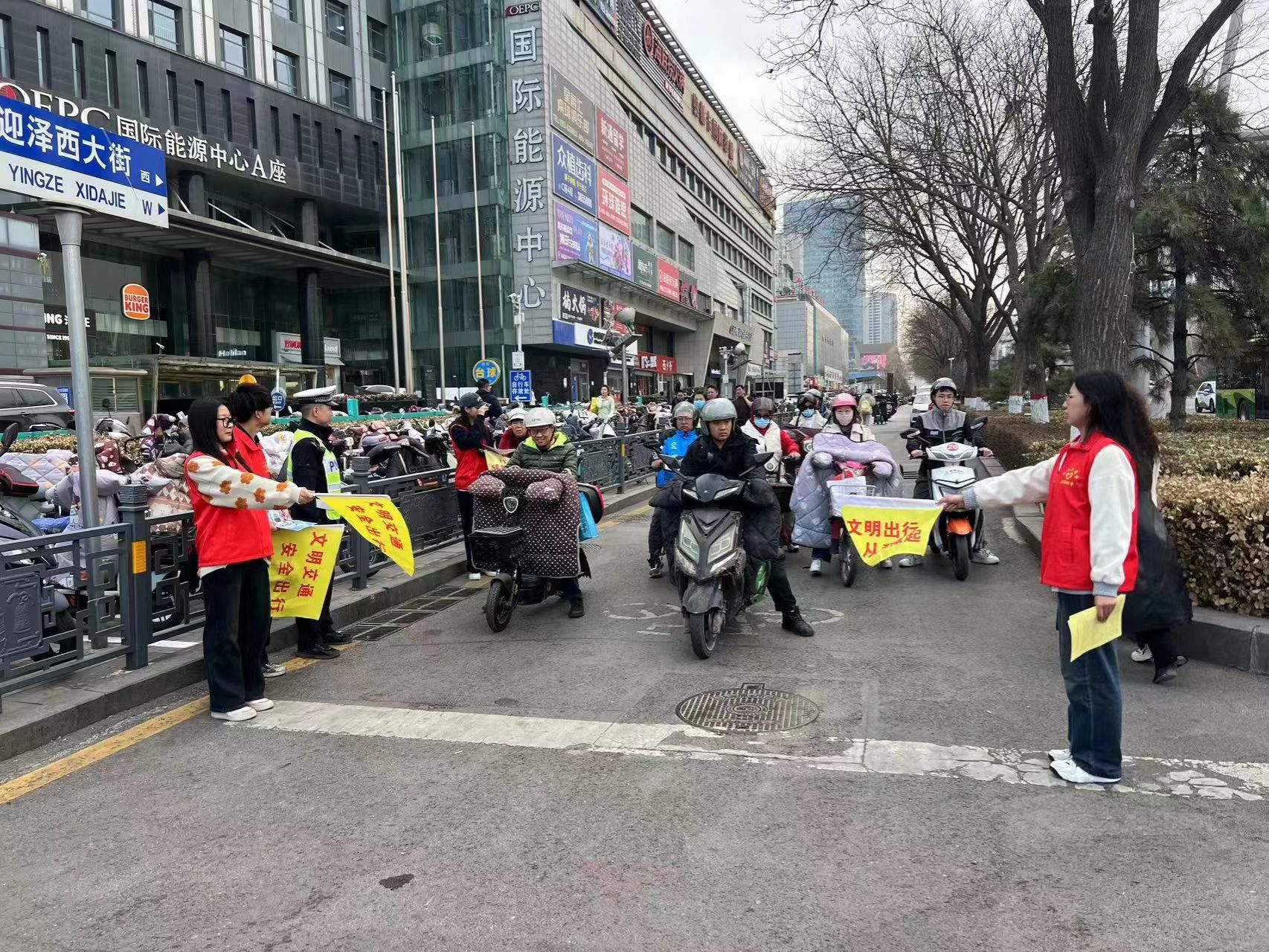 3月中旬,志愿者走进交警队参观学习,深入了解交通安全知识,配合属地执勤交警,在交通路口开展文明劝导、交通秩序维护、制止违章行为、宣传文明出行的志愿活动。向社区居民发放“一盔一带”安全守护行动,“拒绝酒驾”等内容的交通安全宣传单,让市民了解交通安全常识和日常出行注意事项,增强市民交通安全意识。