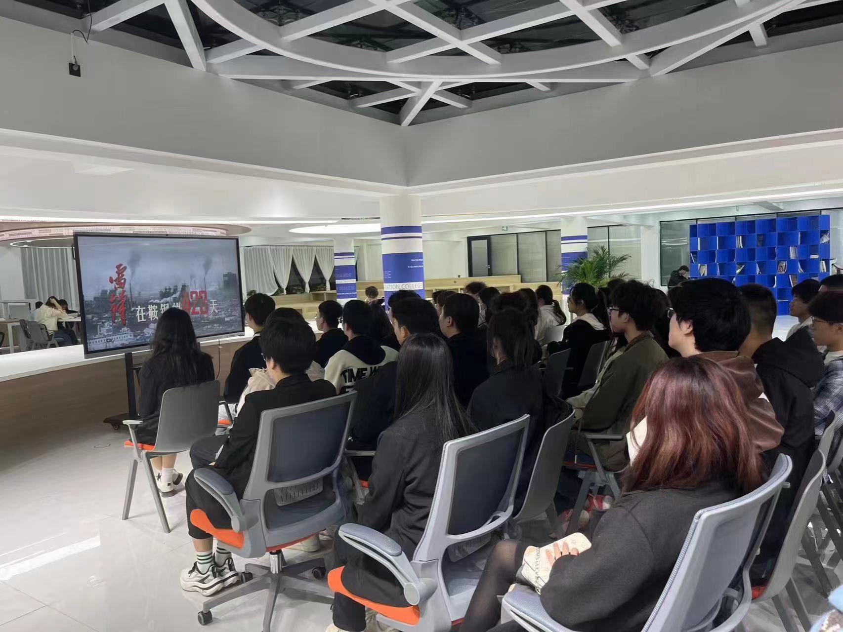 双创中心内,组织学生观看《雷锋在鞍钢的423天》,本次观影活动,为学生提供了一个深入了解和感受雷锋精神的平台,深刻体会到雷锋的高尚品质和无私奉献精神,弘扬了“奉献、友爱、互助、进步”的志愿服务精神。
