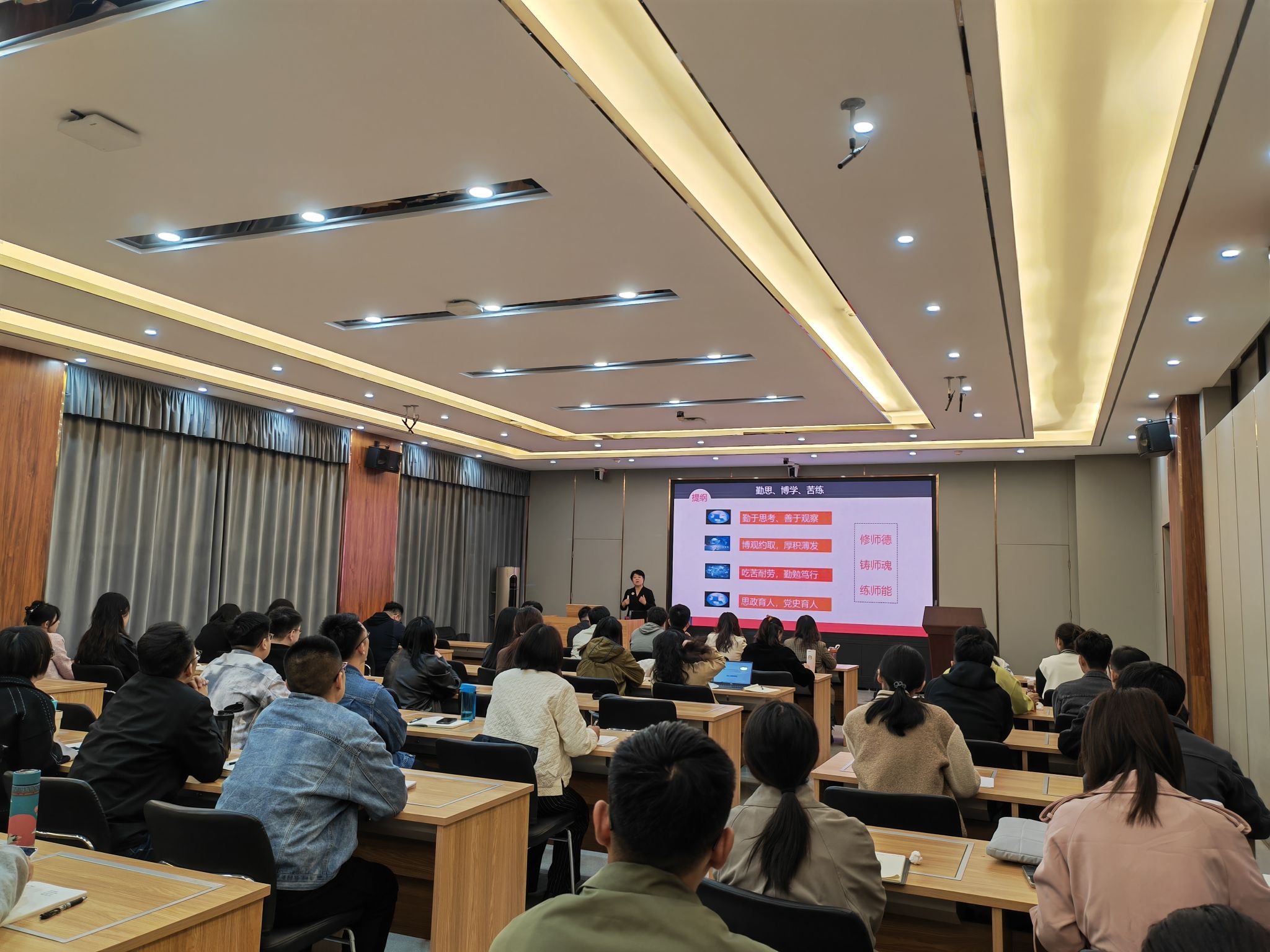 强国先强教,强教先强师。教师是立教之本、兴教之源,本次专题培训以培养新入职教师尽快适应新时代教师岗位要求,提升职业道德和教育教学能力为主要出发点,努力成长为“四有”好老师,为实现学校两大目标提供强有力的人才支持。