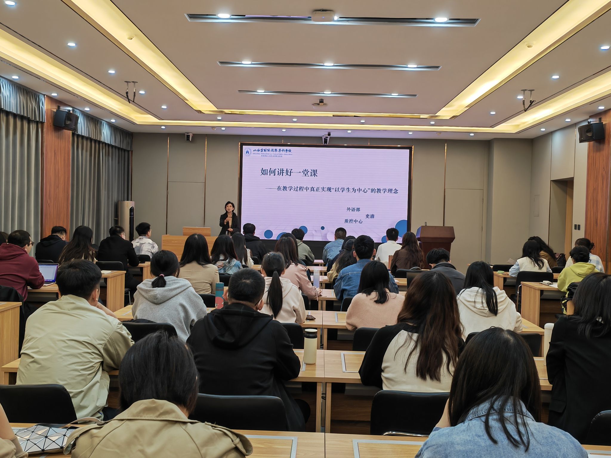思想领航,强化师德师风建设。培训第一课由会计学院院长高翠莲教授带来“如何成为一名好老师”专题讲座,把牢教师工作的“方向盘”。从教近四十年来,她以个人的切身经验向学员们热情分享了“师者,传道授业解惑”的真谛。要想站稳讲台,光有专业知识和能力还远远不够,教育的本质是育人,作为一名好老师,必须要修师德、铸师魂、练师能,掌握“三术”。首先是“学术”,即教师的专业知识和能力要扎实,勤于思考,透过现象看本质;其次是“技术”,要善于观察身边的人事物并应用于教学之中,用周围的事讲专业的理,通俗易懂,深入浅出;第三是“艺术”,教师要善于在传授知识的过程中做好育人目的,培养德智体美劳全面发展的社会主义建设者和接班人。