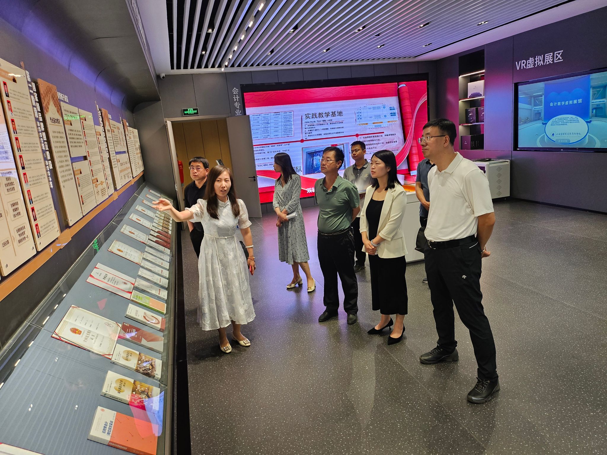 李学宇一行首先参观了数智技术服务港、数智商贸产教园、数智财会产教融合实践基地和大学生创新创业中心,并对bat365产教融合、数智转型、专业建设、人才培养等方面进行了深入了解。