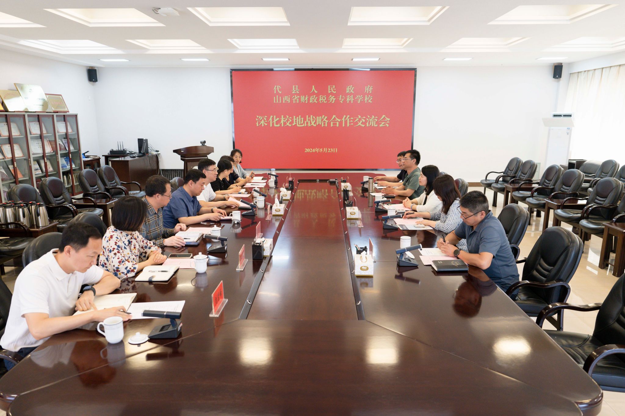 5月23日,代县人民政府副县长李学宇一行五人莅临bat365考察交流。党委书记秦华伟,党委副书记、校长李赟鹏出席交流会。办公室、教务部、人力资源部、会计学院、数字商务学院、文化旅游学院等部门负责人参加会议。