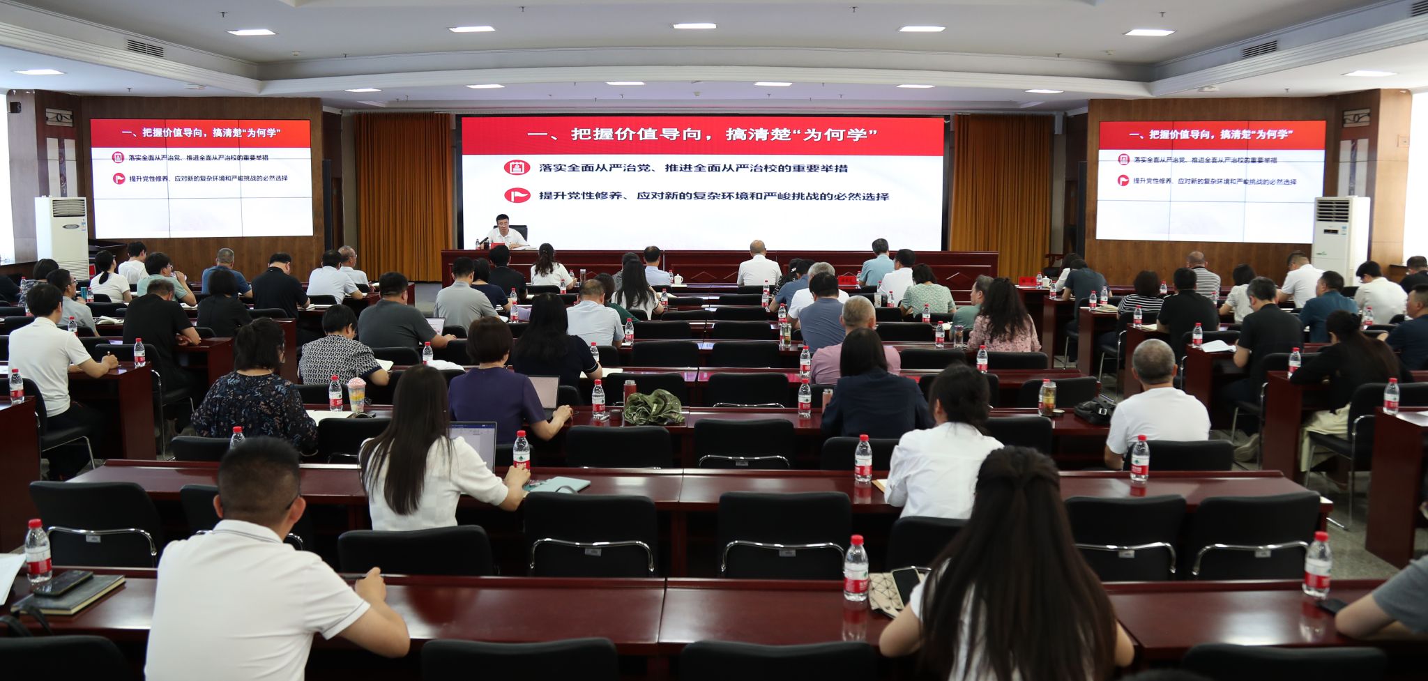 6月20日下午,校党委书记秦华伟以“扎实推进党纪学习教育 护航学校高质量发展”为主题,在一号教学楼七层会议室讲授纪律党课,教育引导党员干部学纪、知纪、明纪、守纪,筑牢拒腐防变的思想防线,为学校高质量发展提供坚强保障。在校校领导、副科级以上干部参加党课培训。