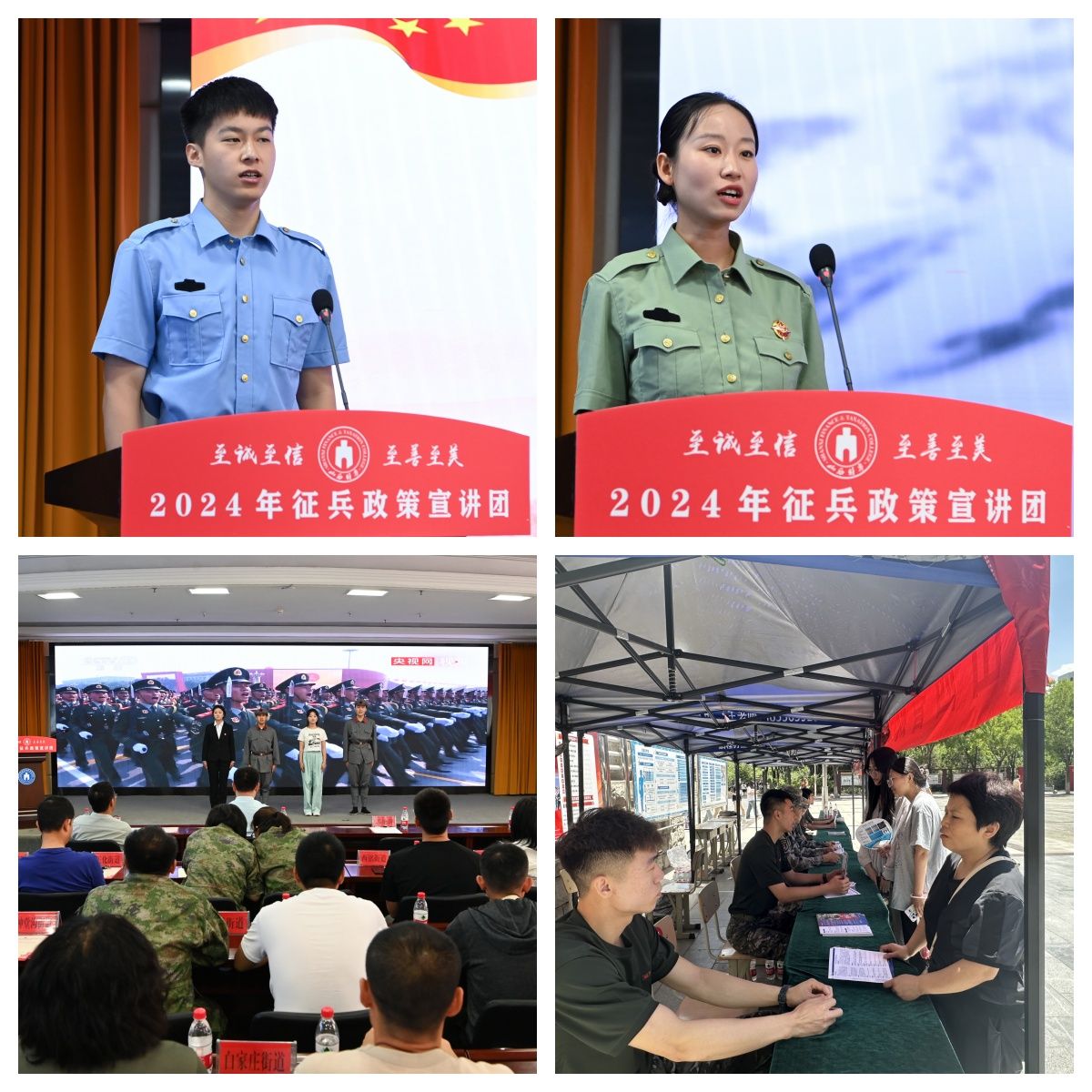 宣讲伊始,现场播放了活动主题短片《国防是什么》。小店区人民武装部王军、优秀退役复学大学生代表李少杰、段 萌、冀宇澎、张 博、齐萧莹依次进行了征兵政策的宣讲,工作人员与大学生进行了现场互动交流,为有意愿参军的学生解答疑惑。bat365文化旅游学院学生、应征青年代表表演了情景剧《提笔从戎 热血青春》。