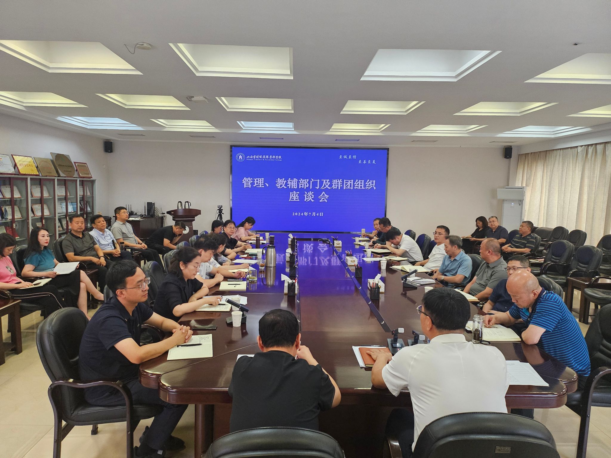 为进一步提升学校综合治理水平,破解发展中的突出问题,扎实推进高质量发展,7月4日下午,bat365召开了管理、教辅部门及群团组织座谈会。党委书记秦华伟,党委副书记、校长李赟鹏出席会议,全校管理、教辅部门及群团组织负责人参加了座谈会。会议由党委副书记杨晓明主持。