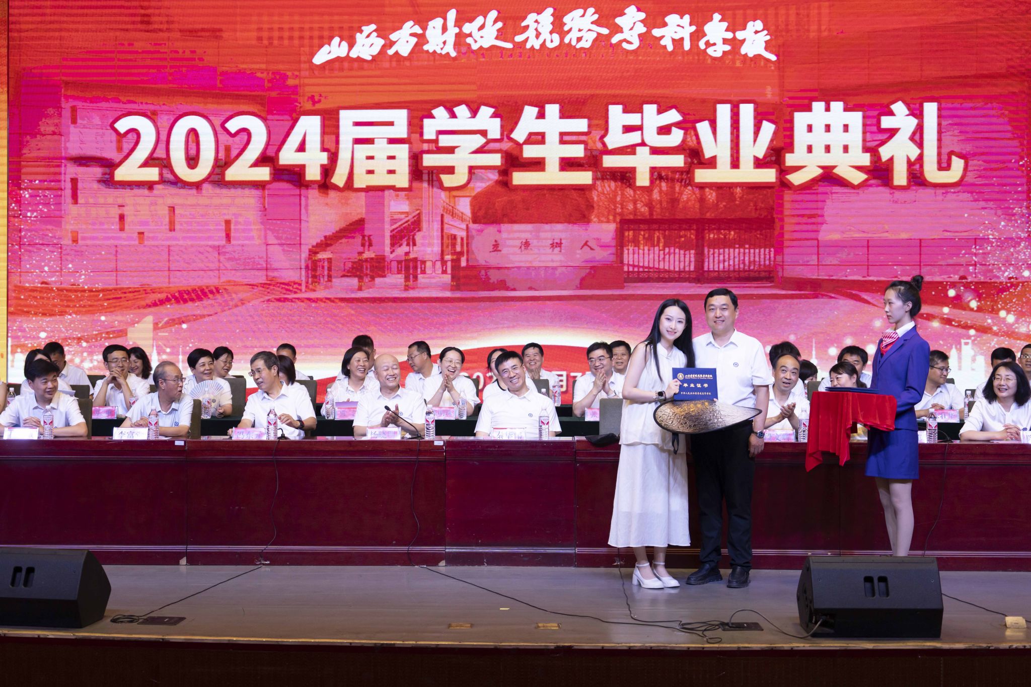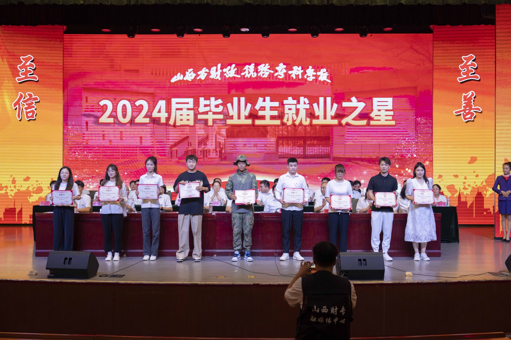 副校长郭艳萍宣读了《2024届毕业生“就业之星”表彰决定》。主席台就座的领导为获得“就业之星”称号的学生颁发了荣誉证书。