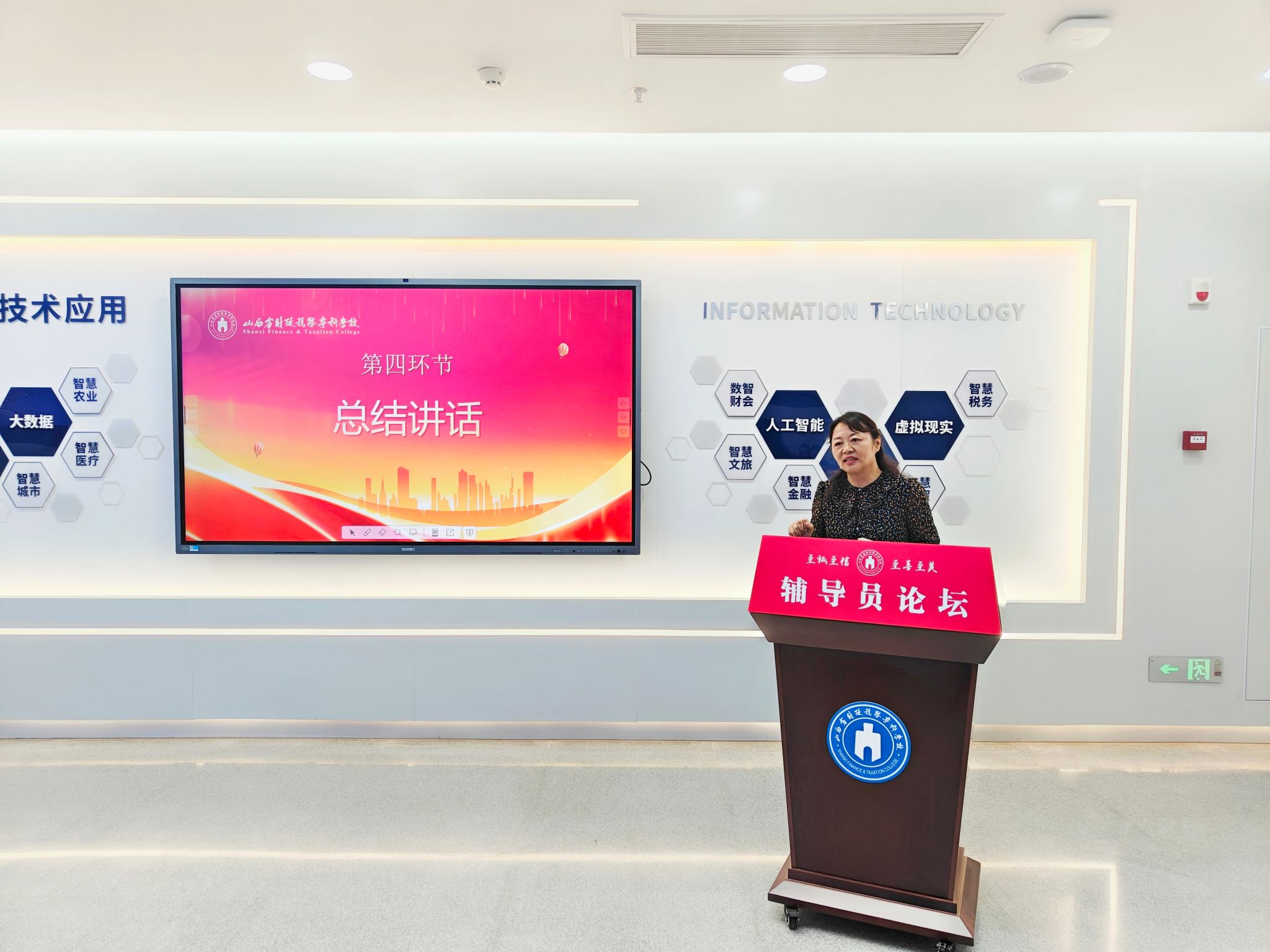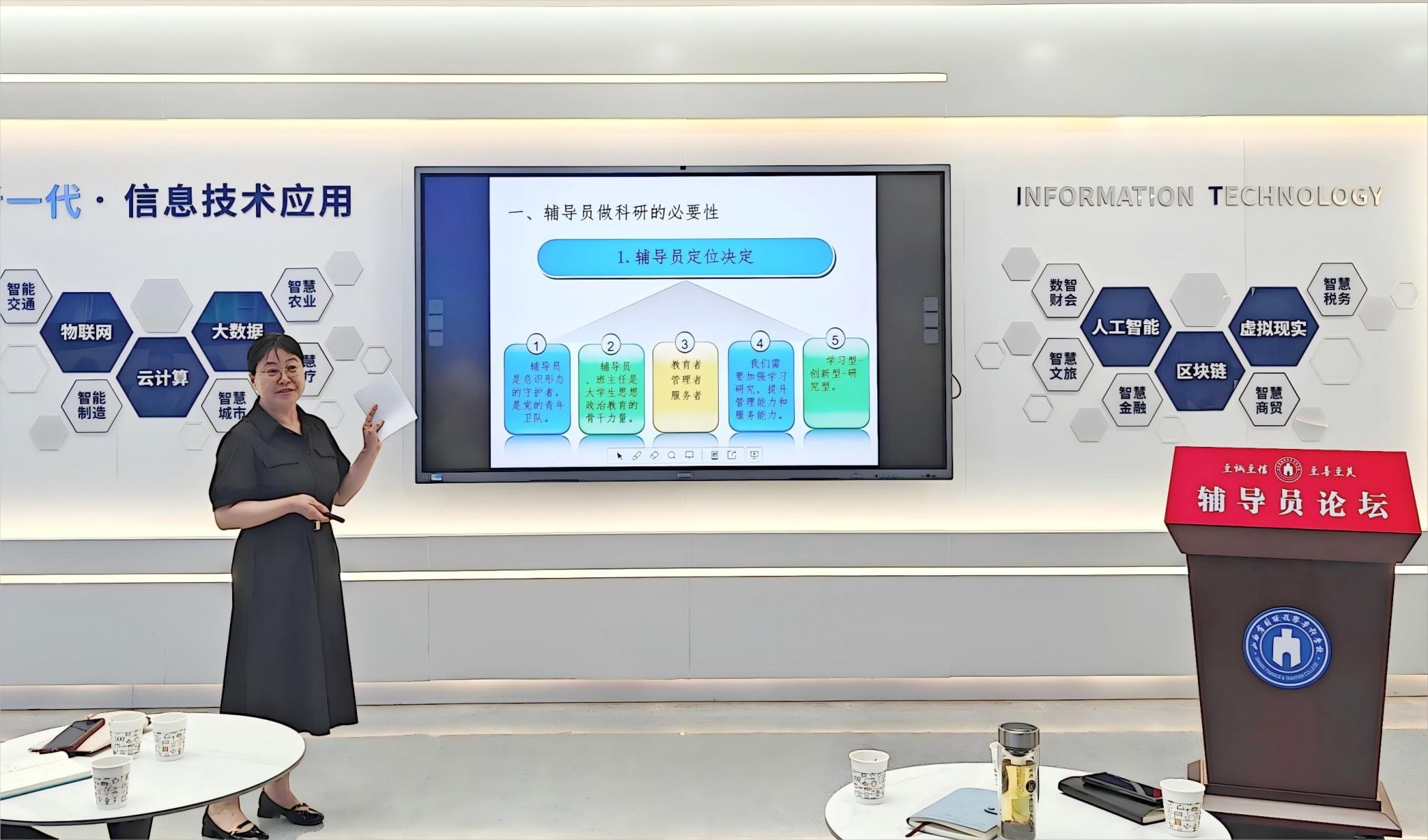 为深入学习贯彻习近平新时代中国特色社会主义思想以及习近平总书记关于教育的重要论述,持续提升bat365辅导员队伍综合能力和职业素养,积极探索赋能辅导员发展新模式,切实提升育人成效。7月11日下午,bat365辅导员发展论坛(第二期)在数智技术服务港成功举办,此次论坛主题为“培根铸魂育人 创新赋能发展”,由学生工作部主办,会计学院承办。党委委员、副校长郭艳萍,学生工作部部长毛军旗,科研服务中心主任田莉,信息学院党总支书记程瑞萍,数字商务学院党总支负责人王方,会计学院党总支书记赵云,学生工作部副部长范文君、招生就业中心副主任闫淑琴出席论坛,全体专兼职辅导员参加论坛。