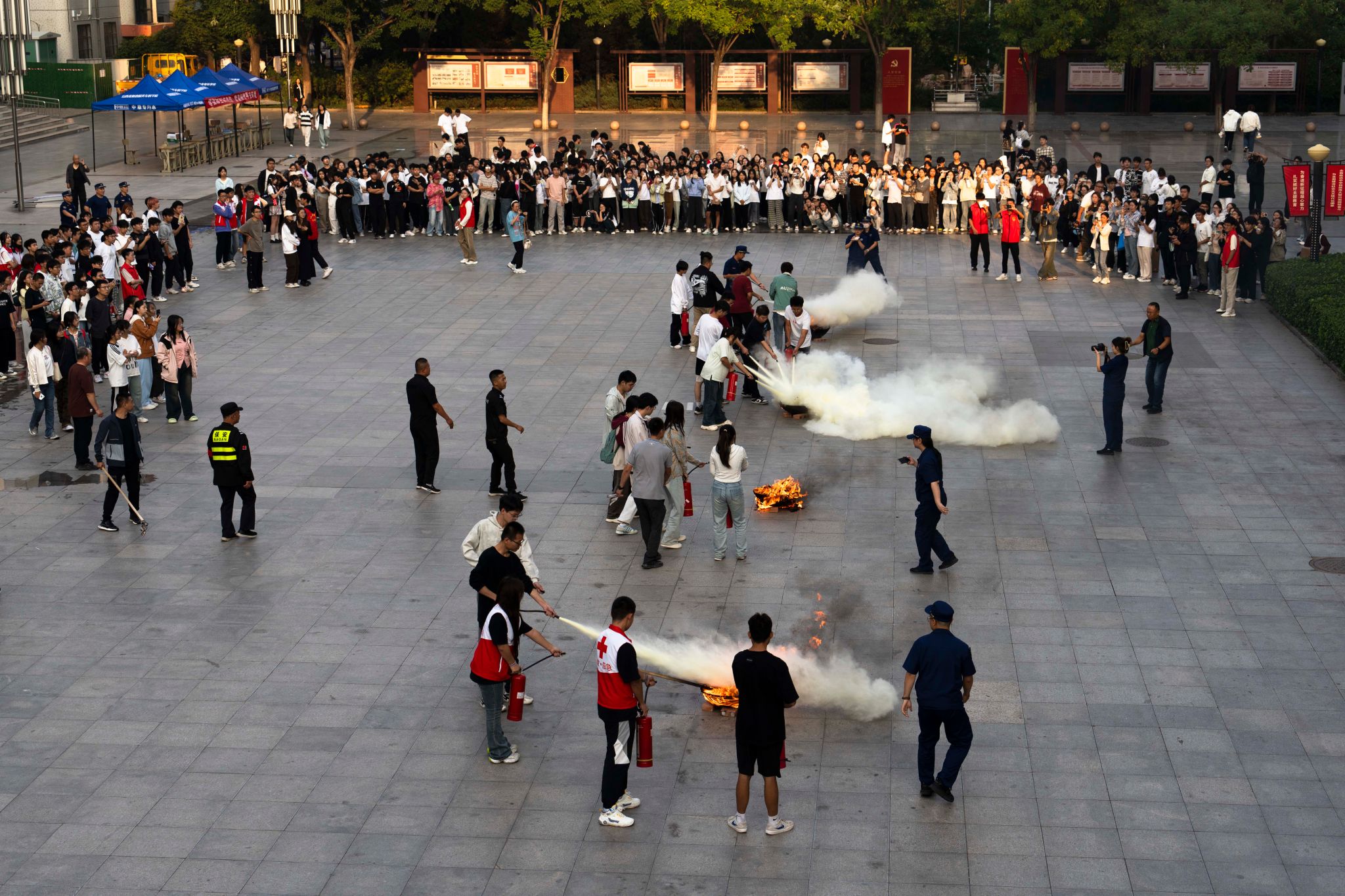 随后,在青年广场开展了灭火器材使用方法的现场讲解及实操演练。广大师生通过实操演练,进一步掌握了使用灭火器材的正确方法。