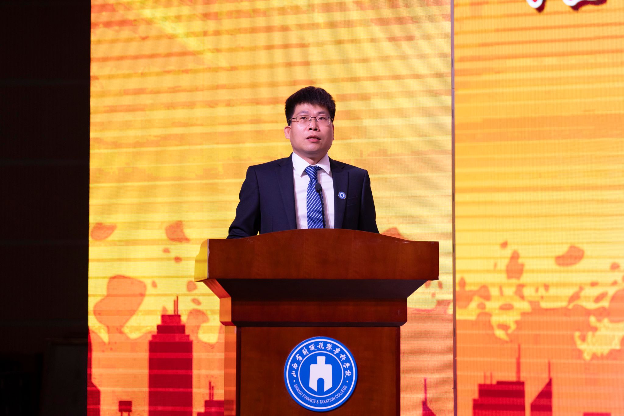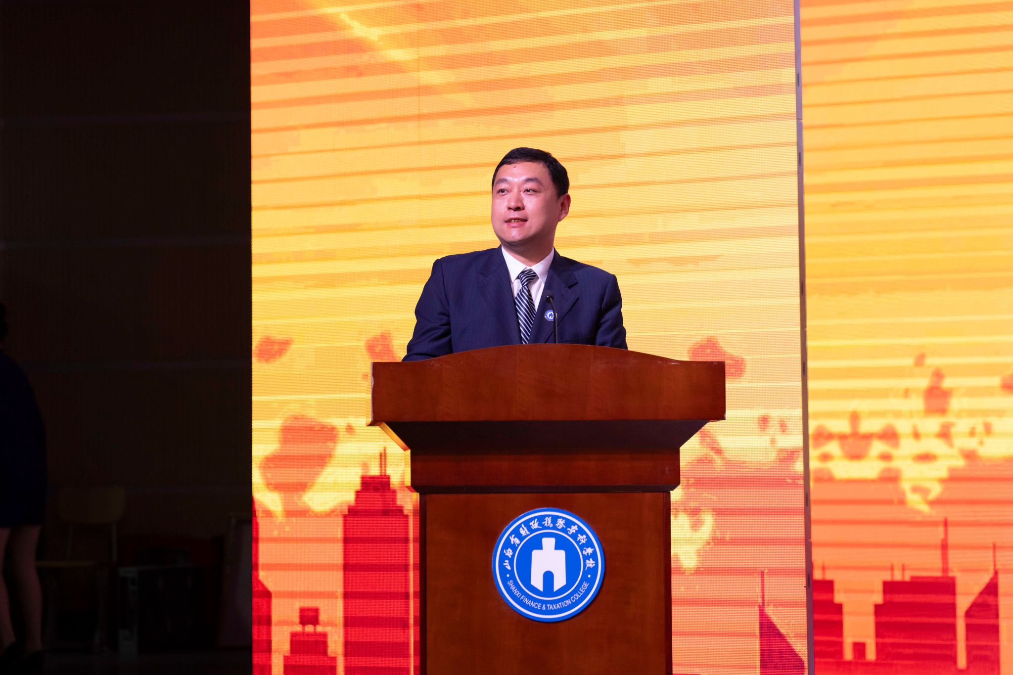 金融学院院长宋陆军博士作为教师代表发言。他希望全体新同学在财专三年的学习生活中树立远大理想,明确奋斗目标,勤奋学习,不断挖掘知识的深度和广度,努力掌握前沿知识,提升专业技能。