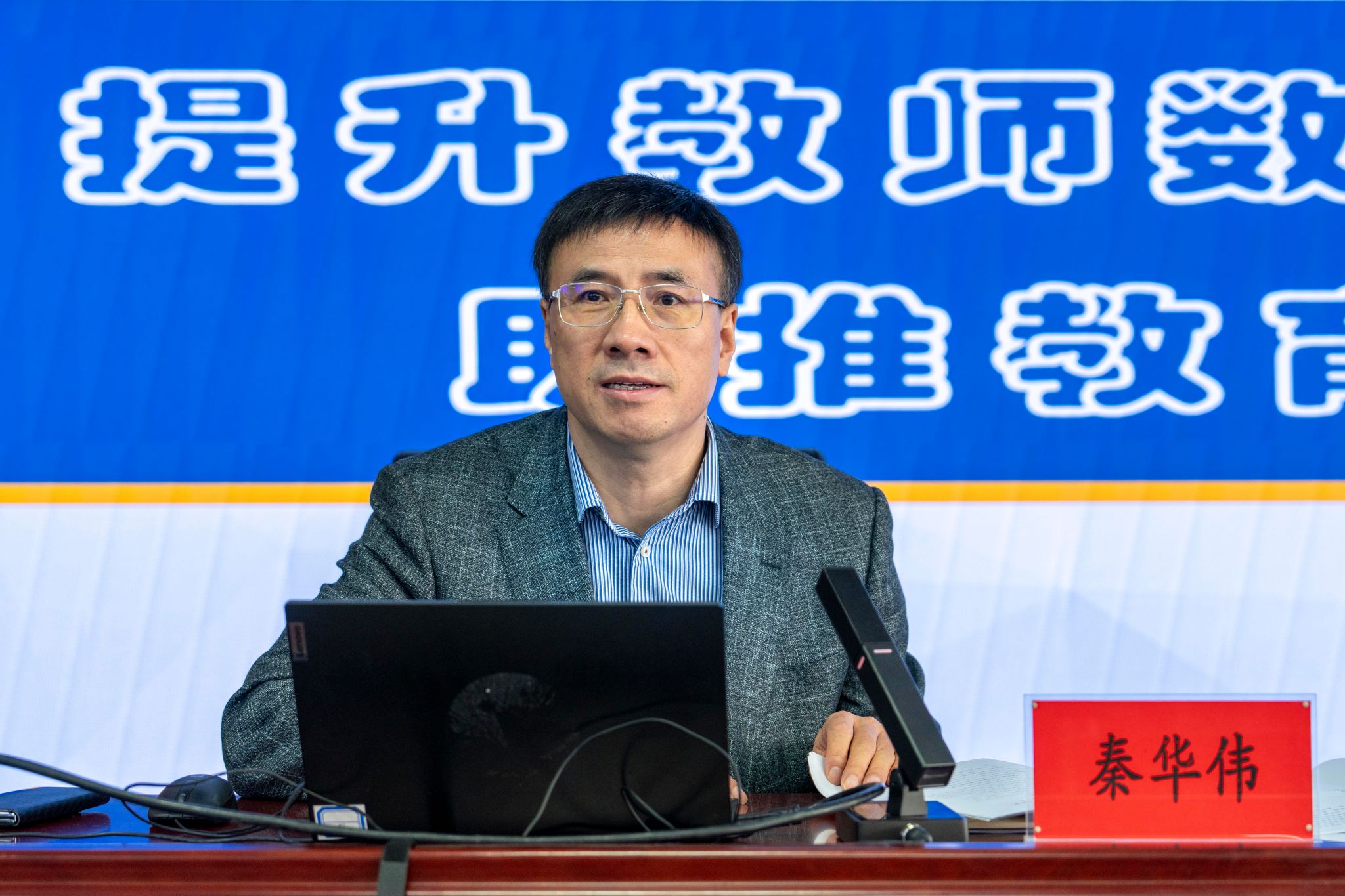 开班仪式结束后,校党委书记秦华伟以“提升教师数字胜任力,助推教育数字化转型”为题,为全体学员讲授了第一课。他深刻剖析了教育信息化和数字化转型的浪潮,以及这一变革对职业院校教师的深远影响。讲座内容既高屋建瓴又贴近实际,为后续培训奠定了坚实的基础。