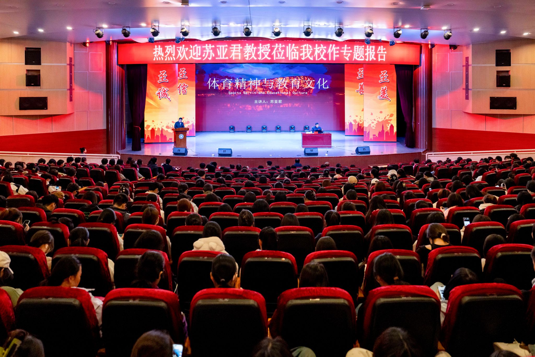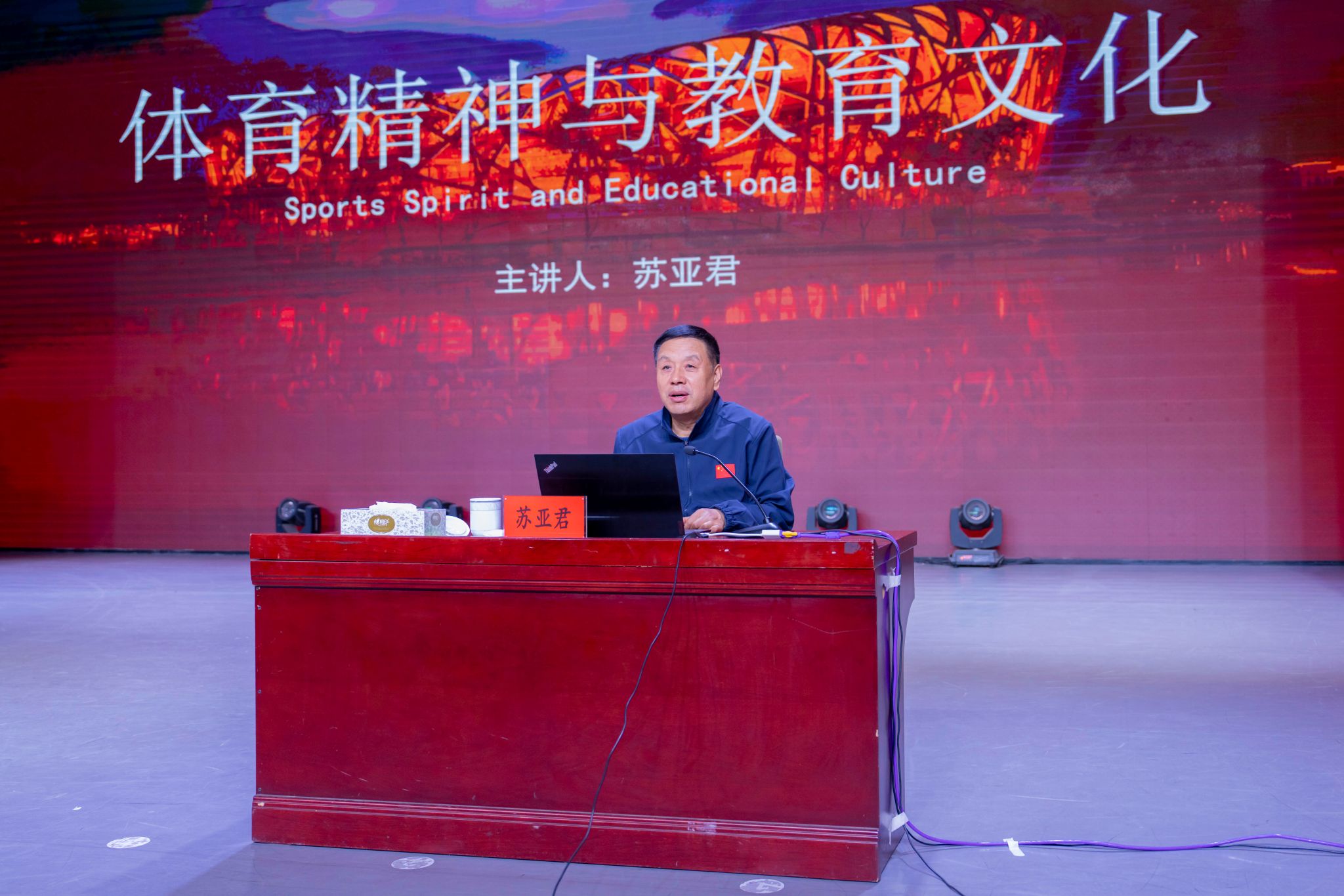 11月5日下午,山西省老年人体育协会主席苏亚君应邀来bat365开展“体育精神与教育文化”专题讲座。在校领导班子成员,有关部门教职工和千余名学生共同聆听了讲座。讲座由校党委副书记、校长李赟鹏主持。