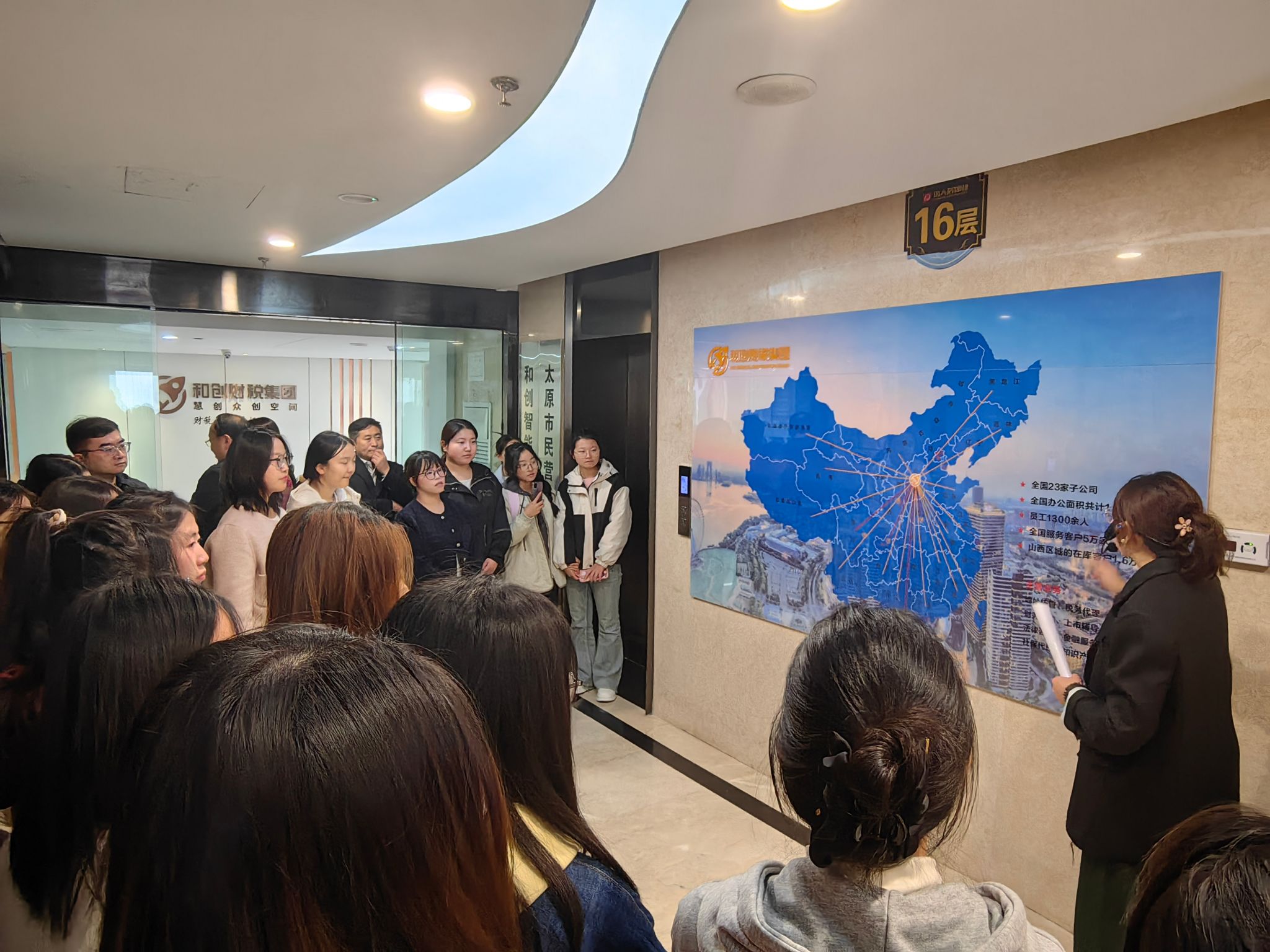 和创财税集团董事长热情接待了bat365师生,并对企业的发展概况、企业文化、业务领域以及人才需求进行了全面介绍。集团人力资源部负责人紧贴当前就业热点,围绕校招岗位与人才培育的“黄金通道”,全面剖析职业机遇与成长路径。学生们在工作人员的带领下,参观了企业办公区域,沉浸式感受企业的干事创业氛围,了解各个岗位在行业内的晋升路径和横向拓展机会。