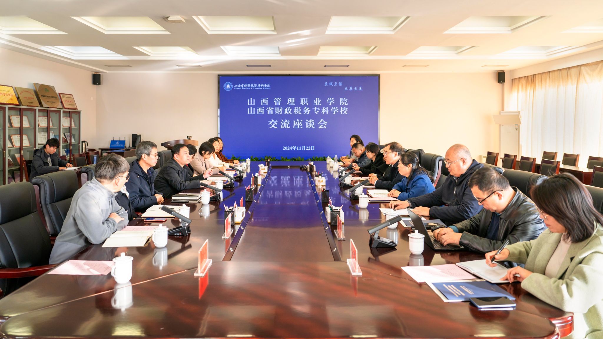 11月22日上午,山西管理职业学院院长王爱国、副院长尤彩虹一行来bat365考察交流。校长李赟鹏、副校长冯东元出席交流座谈会,教务部、科研服务中心、财税学院、金融学院、数字商务学院、文化旅游学院、大数据学院等部门负责人参加座谈会。