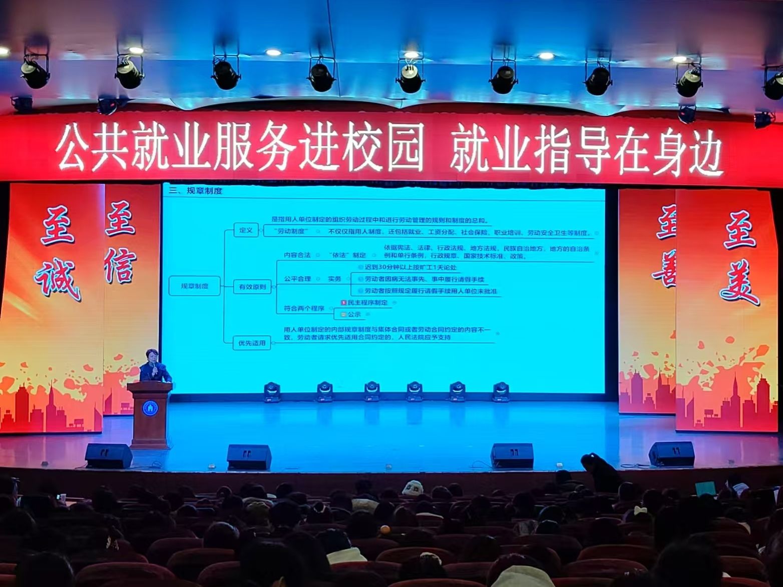 为积极响应国家关于促进高校毕业生就业创业的号召,进一步提升bat365学生的求职实战能力和职业素养,12月3日,bat365携手太原市人力资源和社会保障局、太原市公共就业服务中心,在南校区礼堂举办了“公共服务进校园”专题讲座。