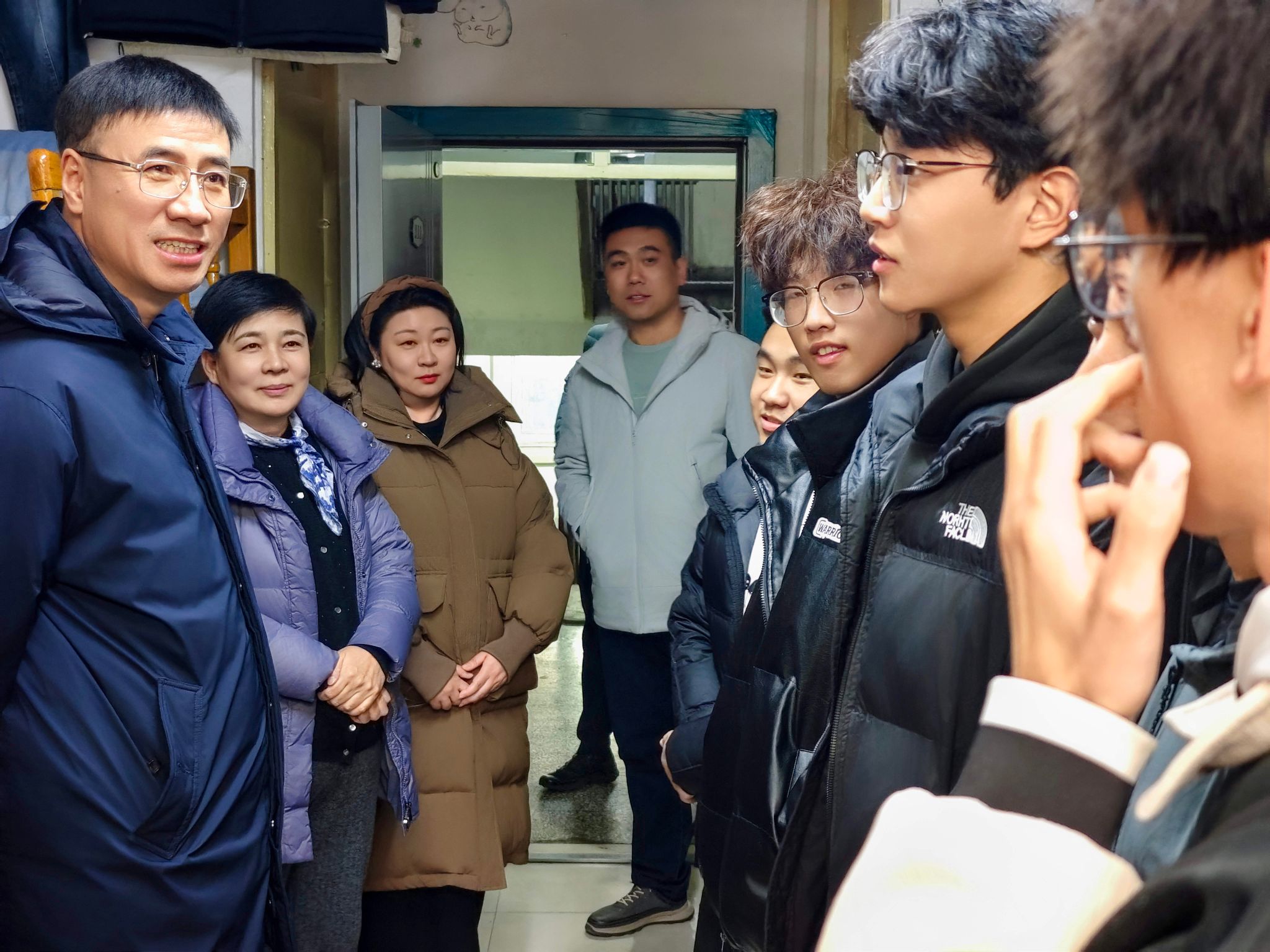 在1号学生公寓楼,秦华伟实地察看走访学生寝室,与学生进行深入交流,仔细询问学生的学习、生活状况,并鼓励同学们要珍惜在校时光,努力学习,练就过硬专业本领;要加强体育锻炼,增强身体素质;同学之间要互帮互助,和睦相处,营造良好的宿舍氛围;要多参与社会实践活动,学会做人做事,提升自己综合能力。走出学生寝室,秦华伟嘱咐学院老师要关心关爱每个学生的成长发展,为学生的成长成才提供保证。一是做好课程上课标准,做好学生培养方案,为学生提供良好的教育机会;二是要认真倾听学生心声,满足同学们的生活需要,为同学们创造良好的生活条件。