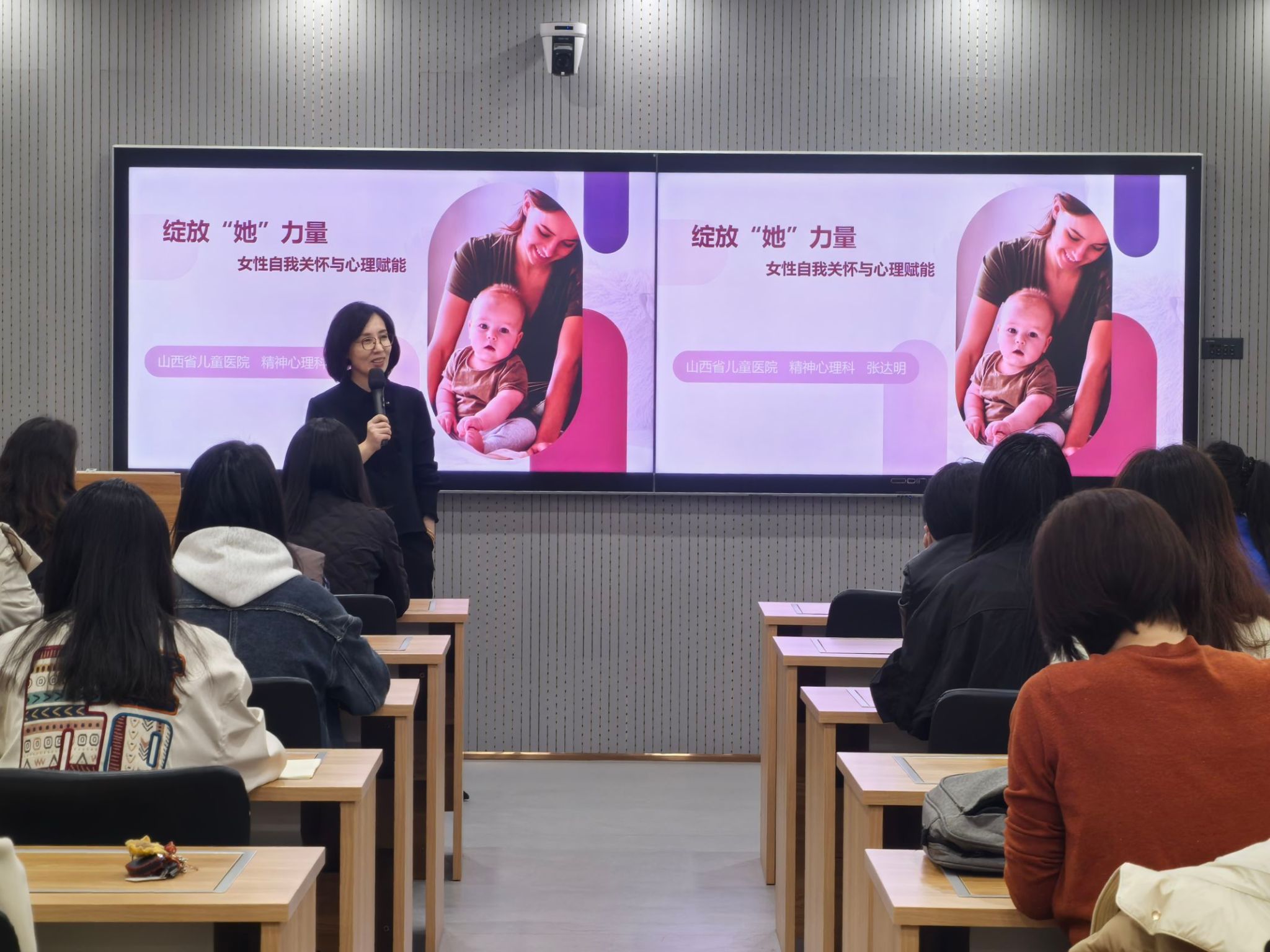 3月14日的会议室化身"女神健康充电站"。校妇联特邀山西省妇幼保健院儿科主任张达明与中药科主任张雪娟为女教职工和女学生普及健康知识。张达明主任借助贴近女性日常生活的实例,将原本晦涩复杂的心理学知识拆解重塑,用通俗易懂的方式呈现出来。张雪娟主任围绕女性身体健康,针对不同体质,讲解合理饮食、适度运动及穴位养生知识,为女性健康筑牢防线。