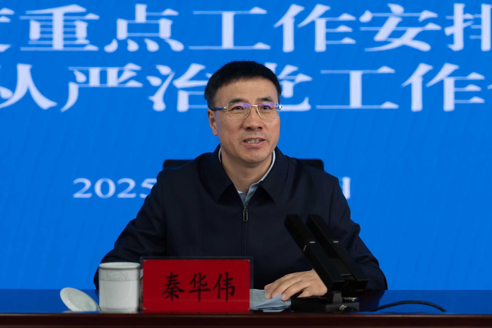 4月10日上午,学校2025年重点工作部署暨全面从严治党工作会在一号教学楼七层会议室举行。科级及以上干部、教授、博士参加会议。党委副书记杨晓明主持会议。