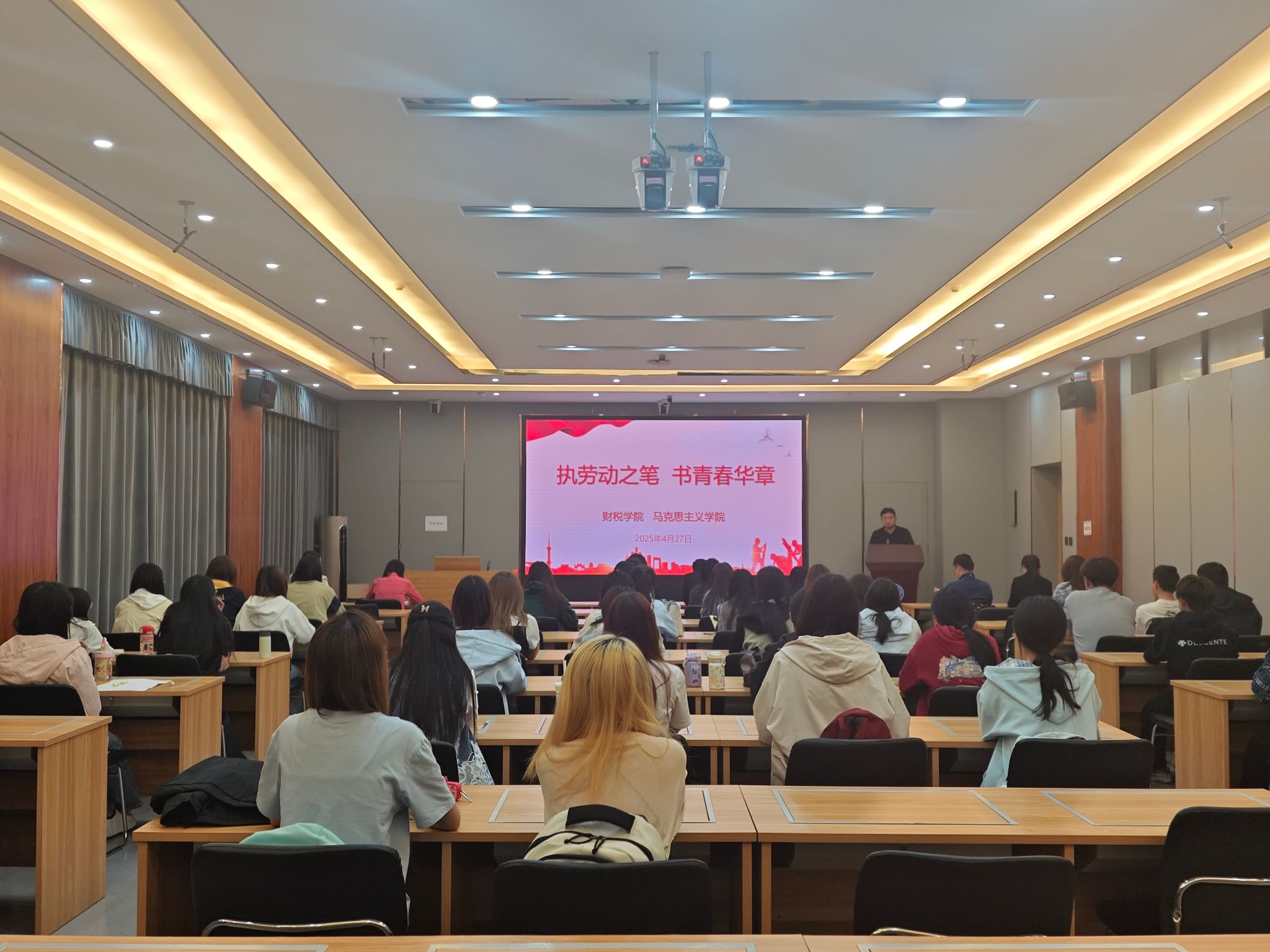 为深化劳动教育与思政课融合创新,探索“课程思政”与“思政课程”协同育人新路径,4月27日下午,财税学院与马克思主义学院共同举办“执劳动之笔,书青春华章”劳动教育主题思政课。活动以跨学科对话、理论与实践交融的形式,为2024级财税大数据应用专业学生呈现了一堂“有深度、有温度、有共鸣”的思政大课。财税学院党总支书记张希、财税学院院长张明珠、马克思主义学院负责人陈彪,相关教师和辅导员代表及部分大一学生参与活动。