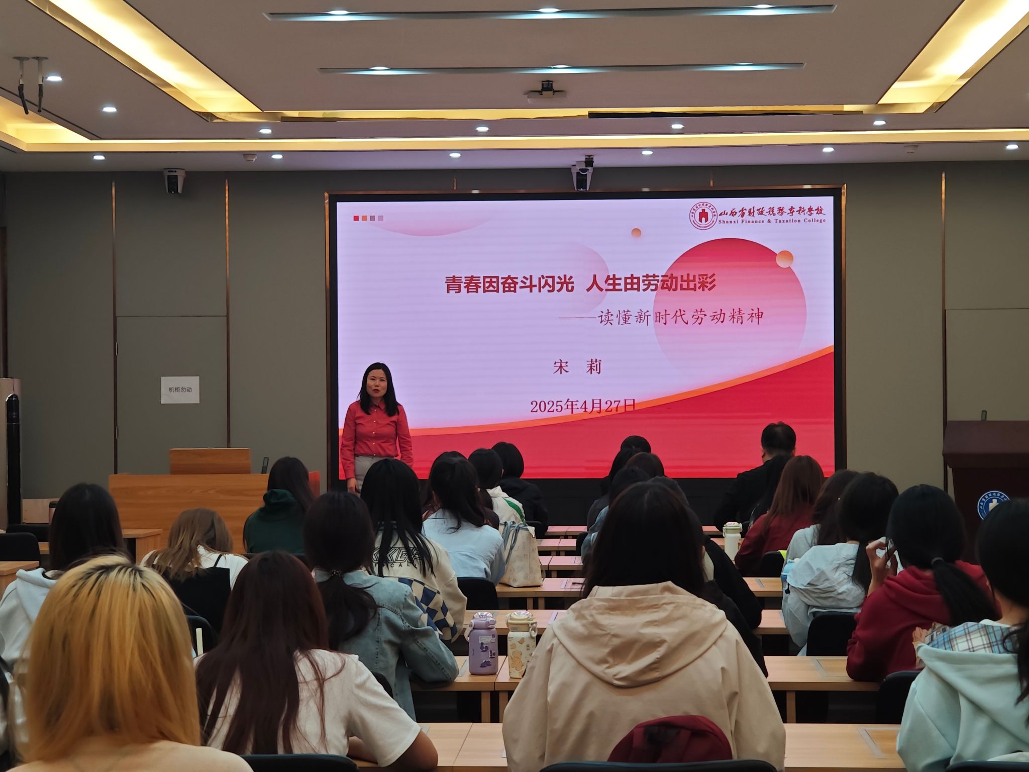 马克思主义学院教师宋莉则以“青春因奋斗闪光 人生由劳动出彩”为题,深入解析劳动精神的科学内涵和时代价值:“劳动精神,是从千千万万劳动群众身上提炼和升华出来的精神品质,具有普遍性、广泛性和基础性。”她从“三个关乎”展开解读,通过“全国劳模罗昭强”“国产机器人天工Ultra”等鲜活案例,诠释劳动精神与强国使命的深刻联结,并寄语学生:“要在辛勤劳动、诚实劳动、创造性劳动中托举中国梦,成就复兴梦。”
