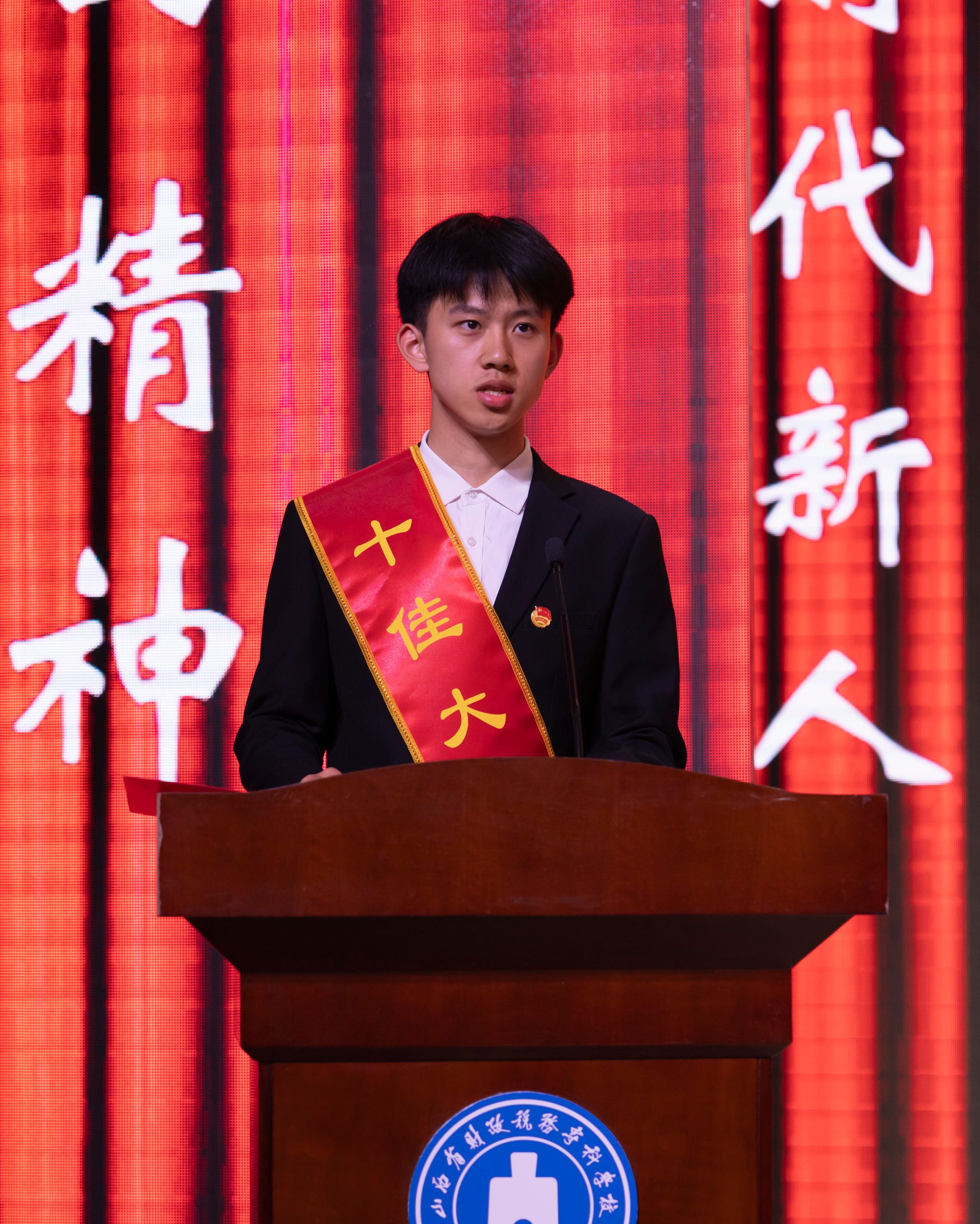 会上,荣获学校第十九届“十佳大学生”称号的李武璋作为学生代表发言。他表示,作为新时代的青年学子要以史为镜,传承五四精神的时代内涵;要以责为纲,锤炼时代所需的过硬本领;要以梦为帆,书写无愧于时代的青春华章。