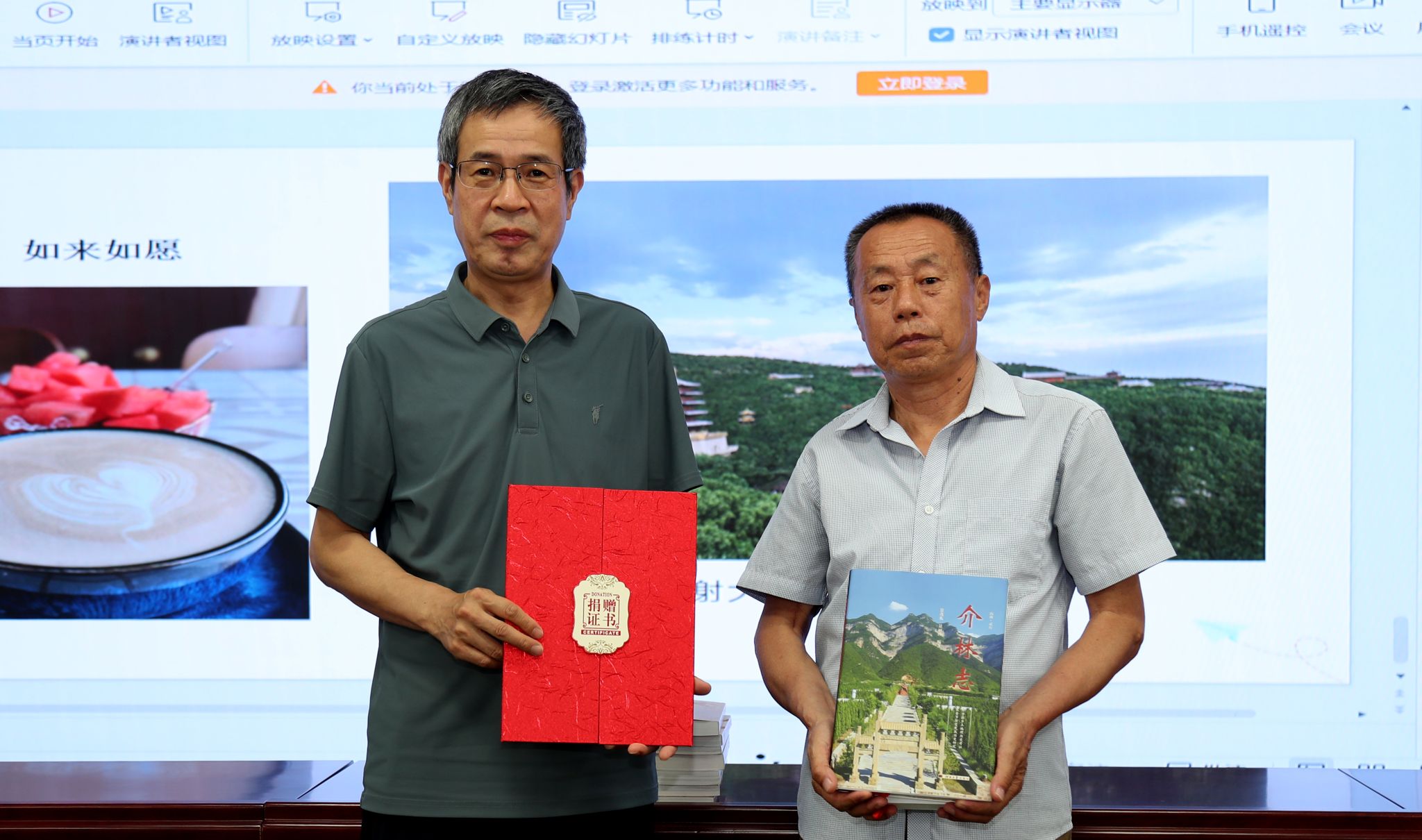 典籍传薪承古韵,书香化人启新章。冀晓峰老师向bat365捐赠《太原最有文化的33处美景》《太原文化美景》《讲述·太原历史文化撷英》《品读太山》《品读龙山》《听得见的博物馆》《晋阳国宝》等7册图书,北京大学三晋文化研究会理事景茂礼老师向bat365捐赠了《介林志》《寒食节与灵石》《介子推与灵石》等3册图书。校党委委员、副校长冯东元代表学校接收了图书,并为他们颁发了捐赠证书,并向他们致以诚挚的谢意。他指出,捐赠图书是“将三晋文化基因注入青年血脉”的生动实践,有助于学生从典籍中汲取文化自信的力量,成为“知太原、爱太原、兴太原”的新时代建设者。