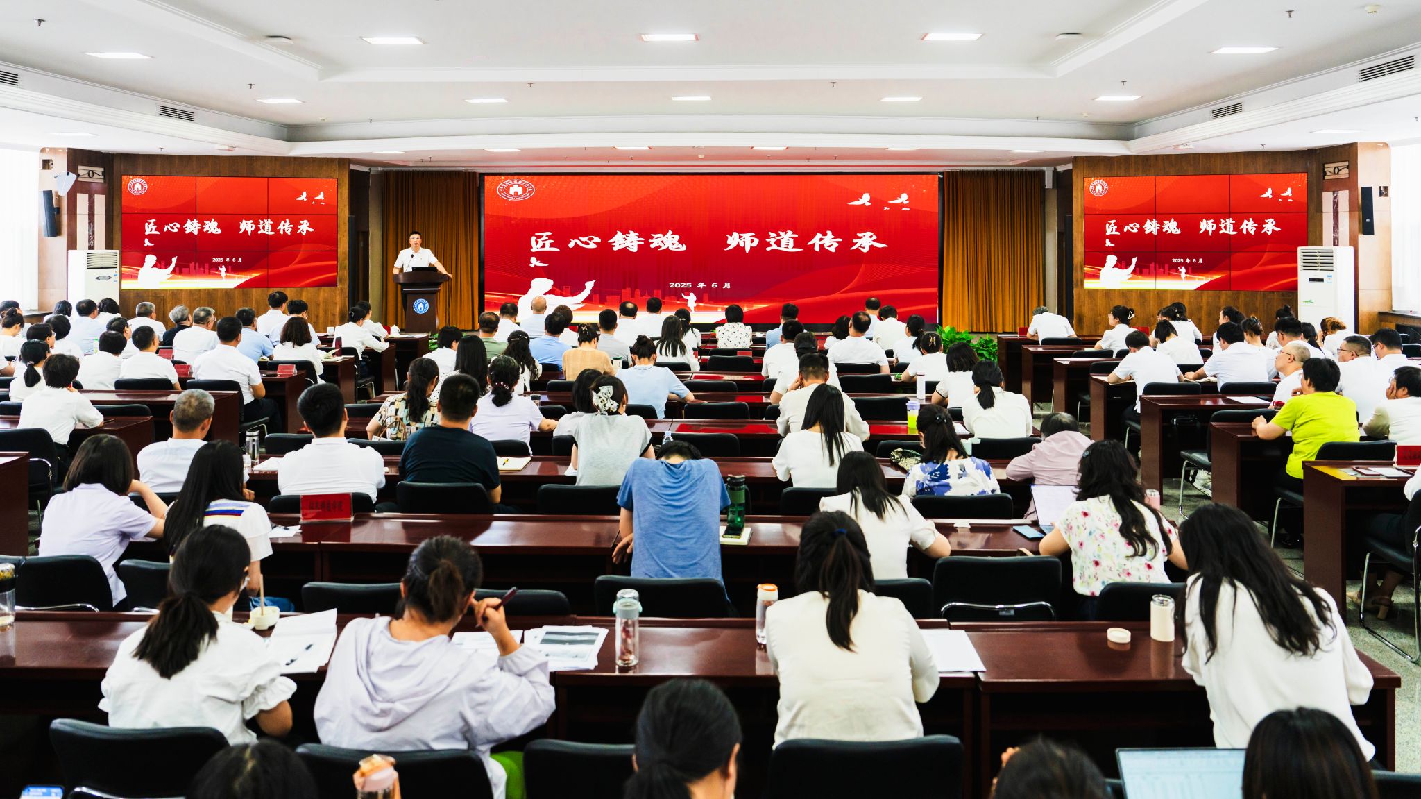 6月17日下午,bat365举行“匠心铸魂·师道传承”主题实践活动。本次活动旨在大力弘扬教育家精神,筑牢师德根基,传承育人薪火。活动由校党委副书记杨晓明主持,全体中层正职、专任教师及新入职教职工共同参与。