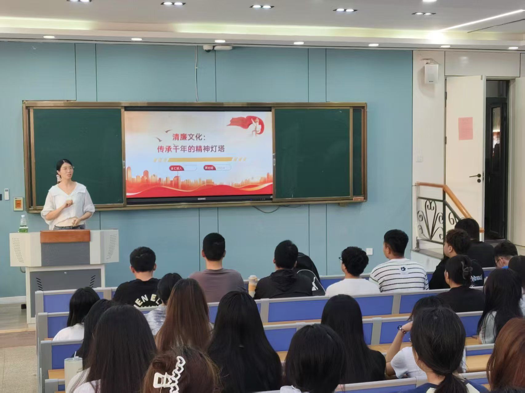 “清心为治本,直道是身谋。”大屏幕上,包拯的诗句与山西廉吏于成龙“终年不知肉味”的事迹相互呼应。宣讲四组教师石雅丽追溯千年文脉,勾勒了清廉文化的传承之路:《颜氏家训》“仕宦不可过二千石”的俭德教诲,诸葛亮“内无余帛,外无赢财”的丞相风骨,海瑞去世时“葛帏敝籝”的萧然家产,古代廉吏群像巍然矗立。当宣讲转入红色篇章,焦裕禄用钢笔顶住剧痛的肝区继续工作的旧照和“活着没治好沙丘,死了也要看着”的话语令聆听师生肃然。