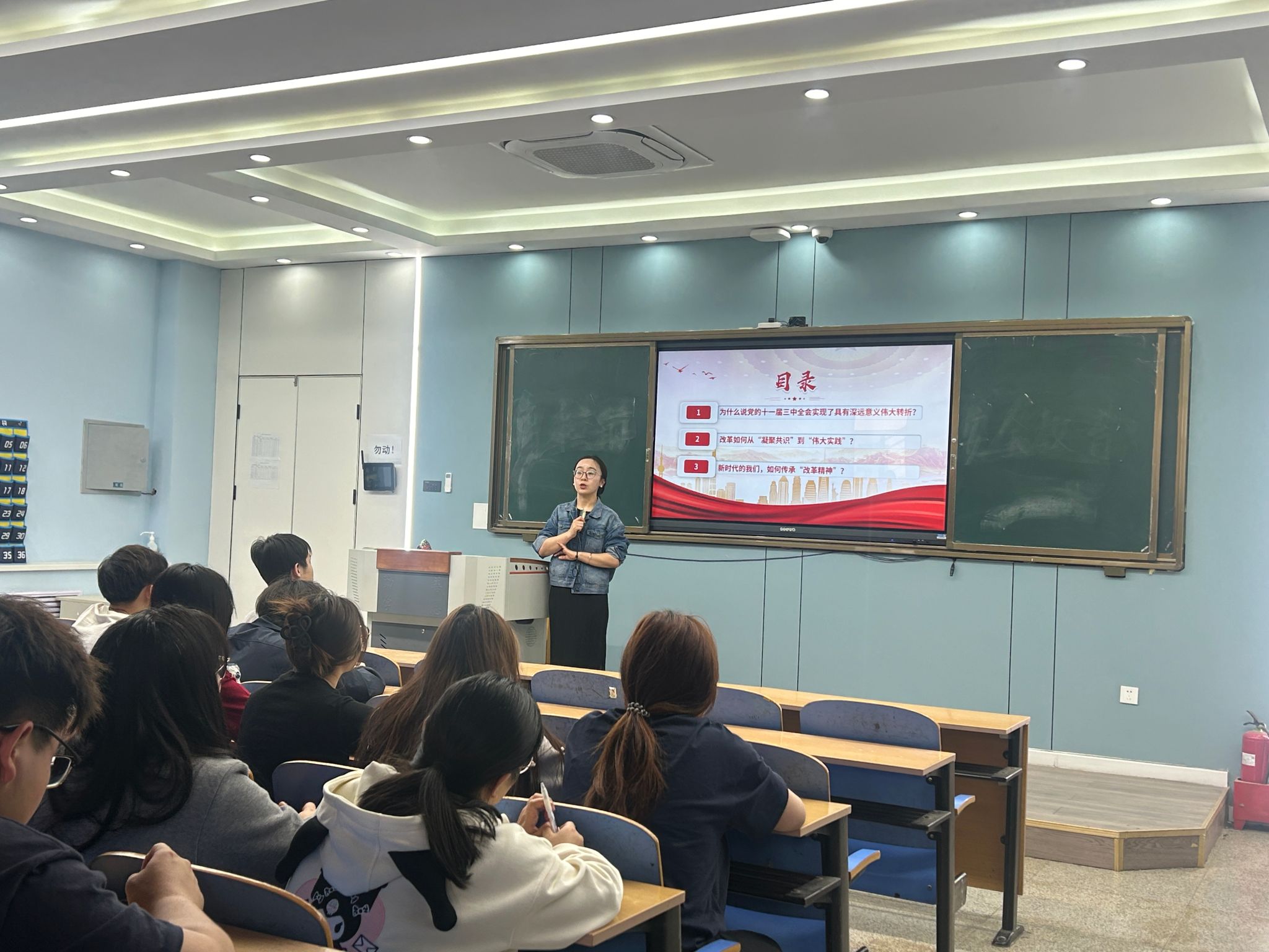 “这份报纸改变了中国的命运。”宣讲一组教师范芹以1978年《光明日报》刊载的《实践是检验真理的唯一标准》一文,再现思想冰封年代的破局时刻。邓小平“不改革就会被葬送”的疾呼振聋发聩,小岗村十八枚红手印点燃星火,恢复高考的考场涌动着570万青年对知识的热望…………财税学院学生尹佳佳感悟道:“当听到‘解放思想’四个字被赋予生死攸关的重量,我才真正理解改革开放在民族复兴中的里程碑意义,才懂它背后的惊心动魄。听到老师讲‘不改革就会被葬送’,我内心为之一振——这不正是对我们现在‘躺平’心态的警钟吗?”
