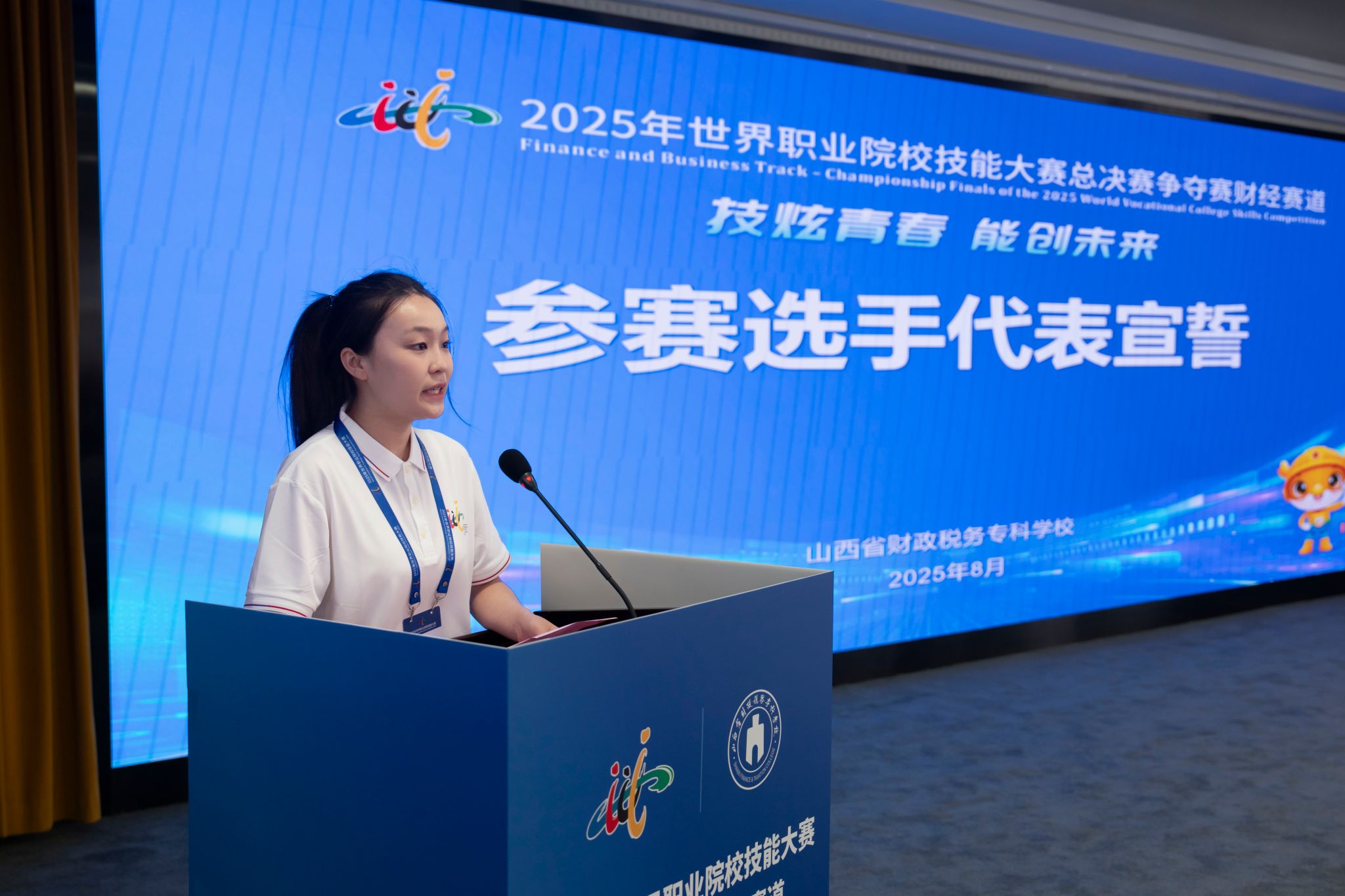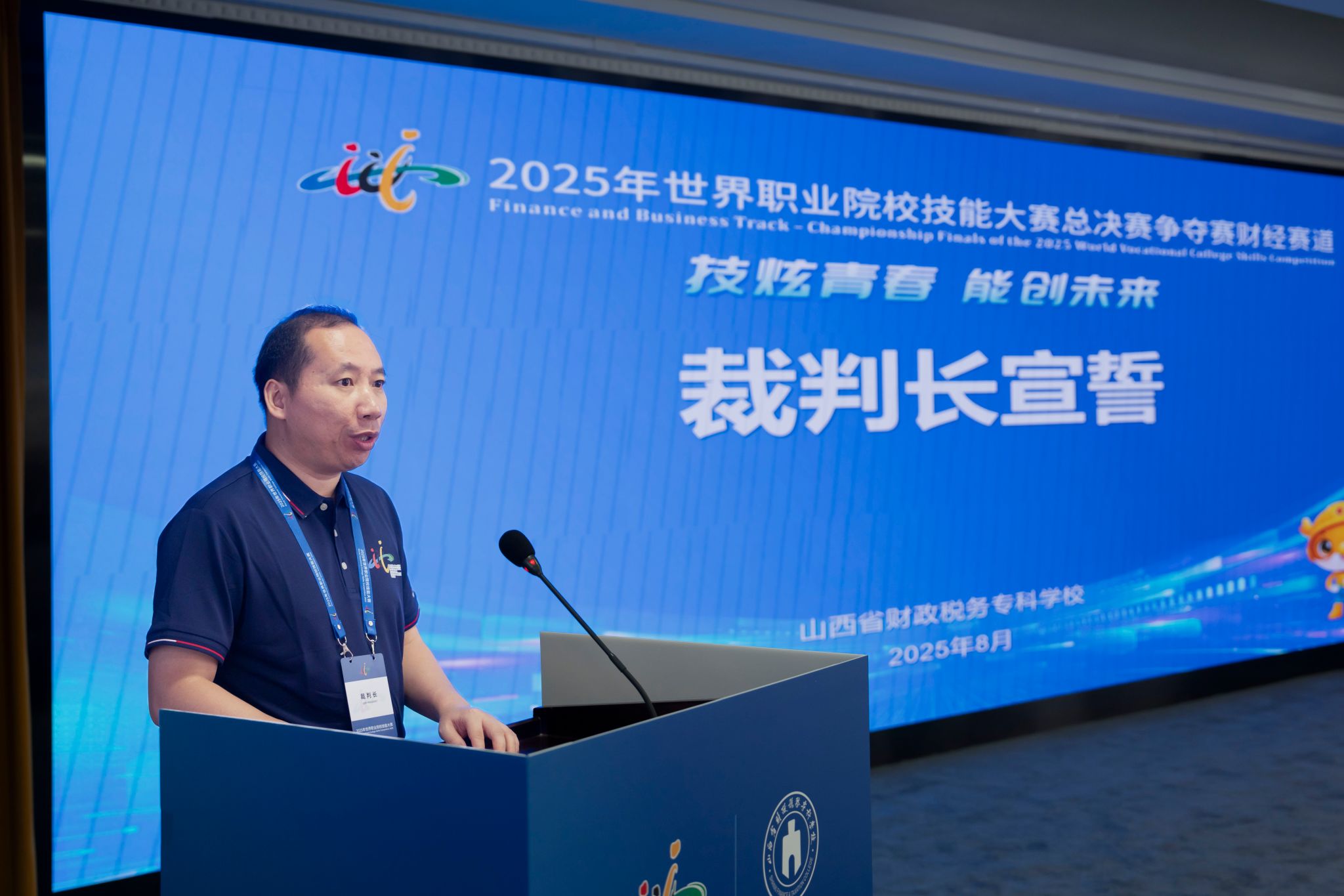 山西省教育厅党组成员、副厅长侯文一致辞并宣布大赛开幕。他指出,近年来,山西省教育厅紧密围绕教育强国、教育强省目标,聚焦“一体两翼五重点”战略任务,贯彻“岗课赛证”综合育人理念,以技能大赛为抓手,不断推动人才培养模式创新。大赛落户山西,既是对我省职业教育成果的充分肯定,更是对山西深化教育改革、提升服务能力的有效推动。他寄语全体师生以赛砺能、追求卓越,希望裁判员严谨执裁、保障公平,预祝大赛圆满成功。在热烈氛围中,大赛正式启动,2025年世界职业院校技能大赛财经赛道高职组总决赛争夺赛全面展开。