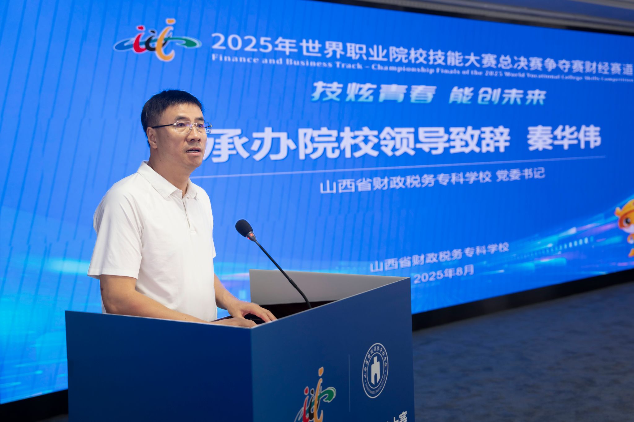 开幕式由校长李赟鹏主持。在庄严的国歌声中,仪式正式拉开帷幕。校党委书记秦华伟在致辞中向远道而来的各位专家、参赛师生表示最热烈的欢迎!向长期以来关心支持bat365发展的各级领导、各界朋友表示最衷心的感谢!他强调,学校有幸协办这一职教盛事,是教育部、山西省教育厅对财专办学实力与组织能力的高度信任,也是对学校长期以来坚持“以赛促教、以赛促学,以赛促改、以赛促建”育人理念的充分肯定。希望通过此次大赛,进一步加强与全国兄弟院校的交流合作,共同探索职业教育高质量发展的新路径、新模式,为推动中国职业教育走向世界、服务全球治理贡献智慧和力量。