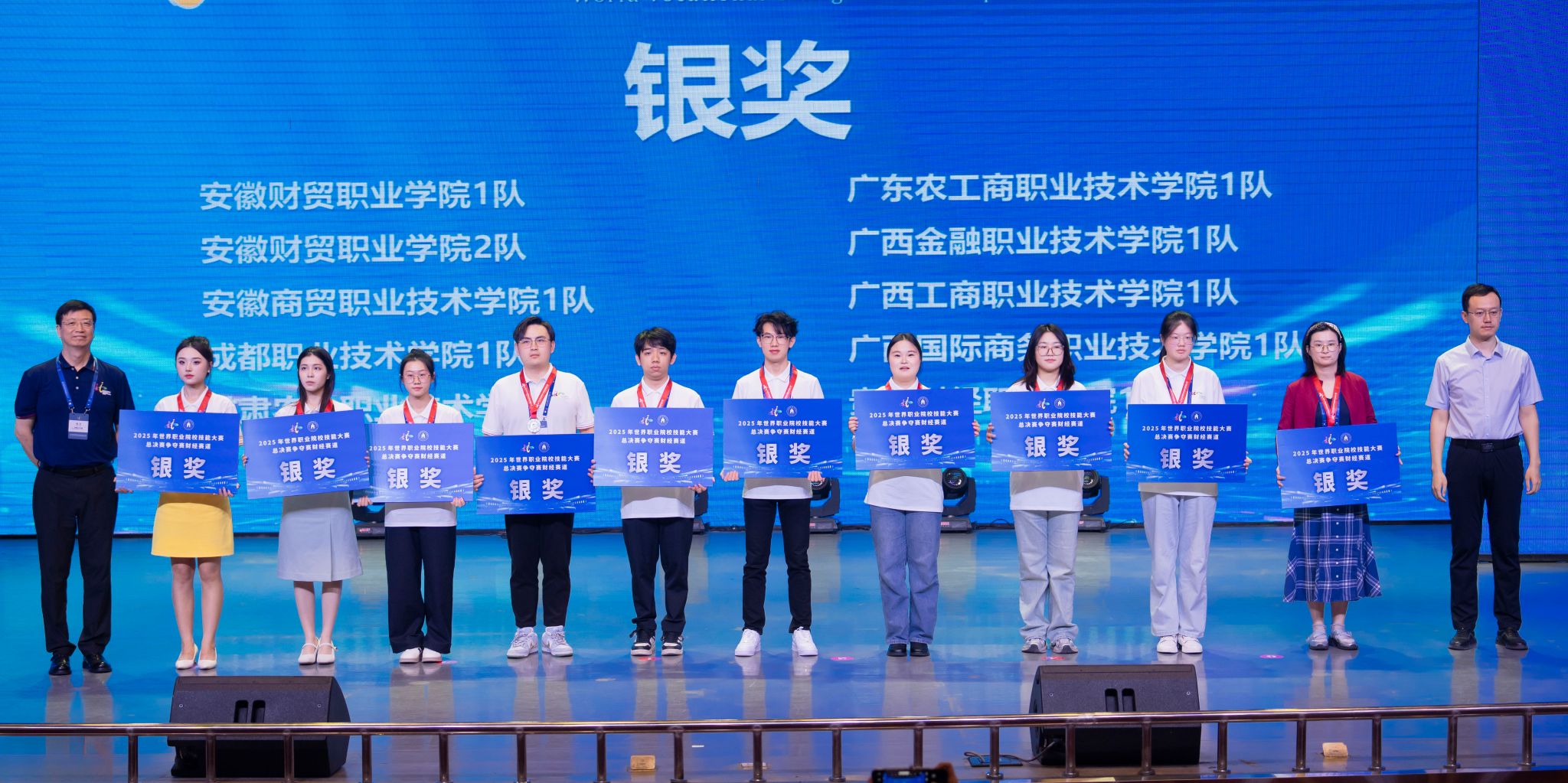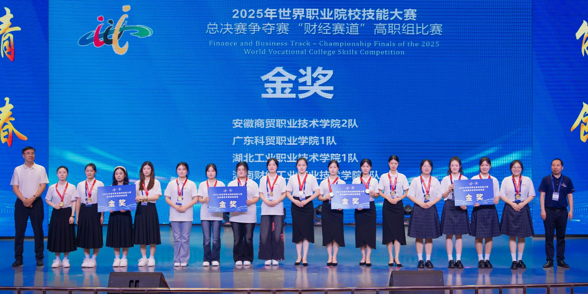 8月29日上午,2025年世界职业院校技能大赛总决赛争夺赛财经赛道高职组闭幕式在bat365礼堂隆重举行。大赛以团体赛形式进行,紧扣财经行业技术前沿,共吸引206支参赛队、819名选手同台竞技,最终评选出金奖20个、银奖40个、铜奖60个。