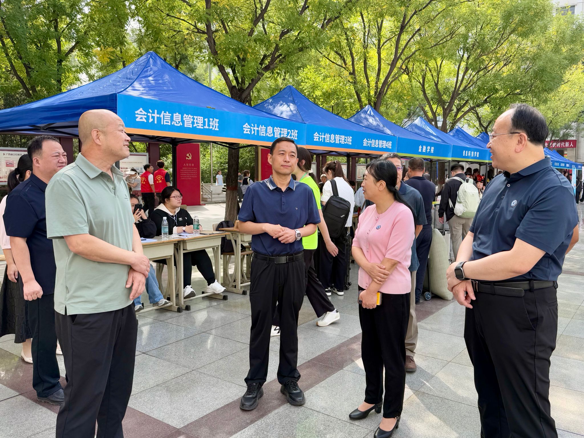 校长李赟鹏来到迎新现场,深入各报到点、宿舍和食堂,看望慰问工作人员和志愿者,对他们的辛勤付出表示感谢。“从哪里来?”“对学校印象如何?”“有什么困难需要解决?”李赟鹏与新生及家长亲切交谈,询问行程感受,倾听意见建议,并勉励新生珍惜时光、积极融入、学有所成。亲切的关怀与诚挚的问候,拉近了彼此的距离,也让家长们倍感安心。一位家长动情地说:“孩子在财专读书,我们放心。相信在学校精心培养下,一定能够成长成才 ”