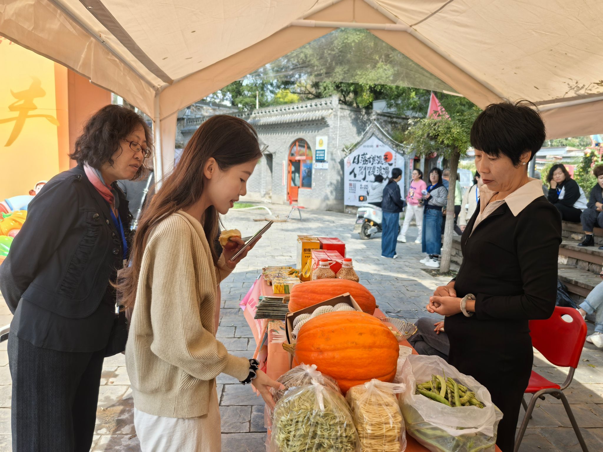 冯东元与王贵珠共同为乡村科技服务站揭牌,随行学生对第十二届西南舁乡苹果采摘季活动进行了现场直播。