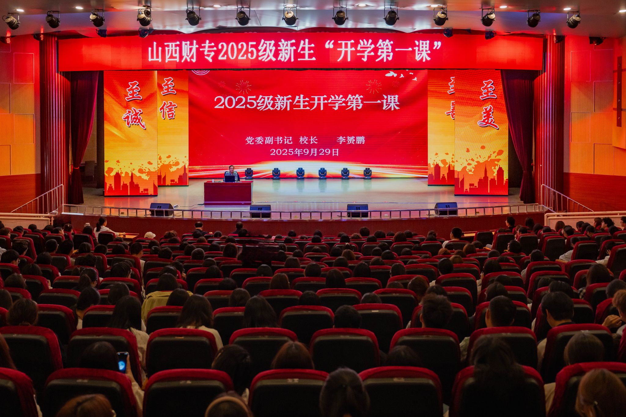 金秋送爽,启航新程。9月29日下午,校党委副书记、校长李赟鹏在会堂以《传承红色爱国基因,锤炼财经报国本领,以硬核青春投身强国伟业》为题,为2025级新生讲授“开学第一课”。会计学院、数字商务学院1300余名师生共同聆听。