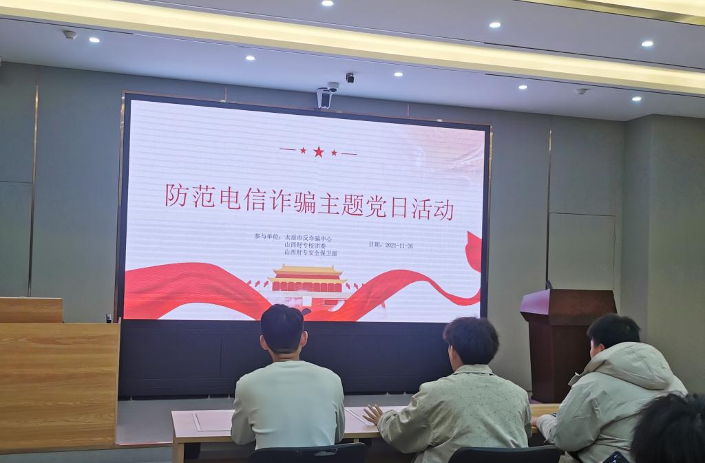 为进一步加大校园防范电信诈骗的宣传力度,11月26日下午,校团委、安全保卫部与太原市公安局反诈骗中心在南校区1号教学楼103室联合进行了“防范电信诈骗”主题党日活动,活动通过抖音视频录制的方式在学生们中间掀起了一股冬季防范电信诈骗宣传热潮。