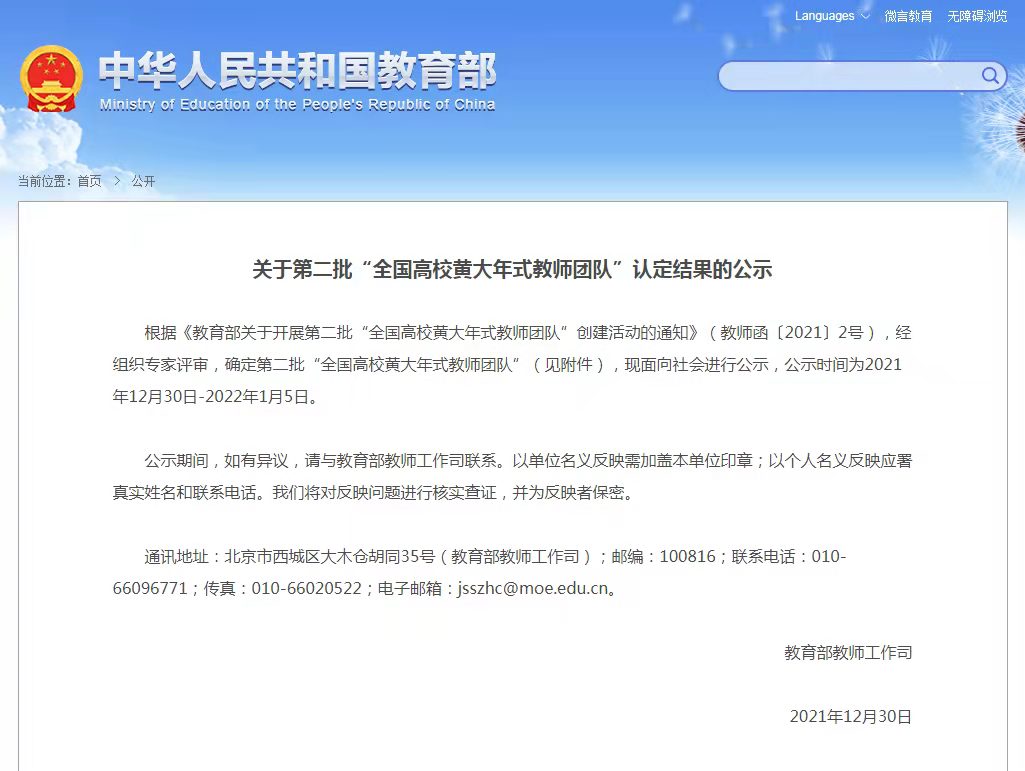 bat365“德润智创”会计教师团队入选第二批“全国黄大年式教师团队”