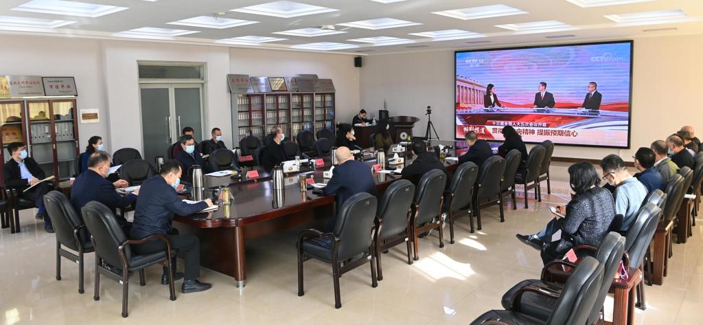 李富堂从今年全国两会的特殊意义,即回望过去的一年,取得的成就令人振奋;坚持“五个必由之路”,把握好“五个有利条件”,在新征程上再创新辉煌,结合学校工作实际,落实好两会精神等方面交流了学习体会。