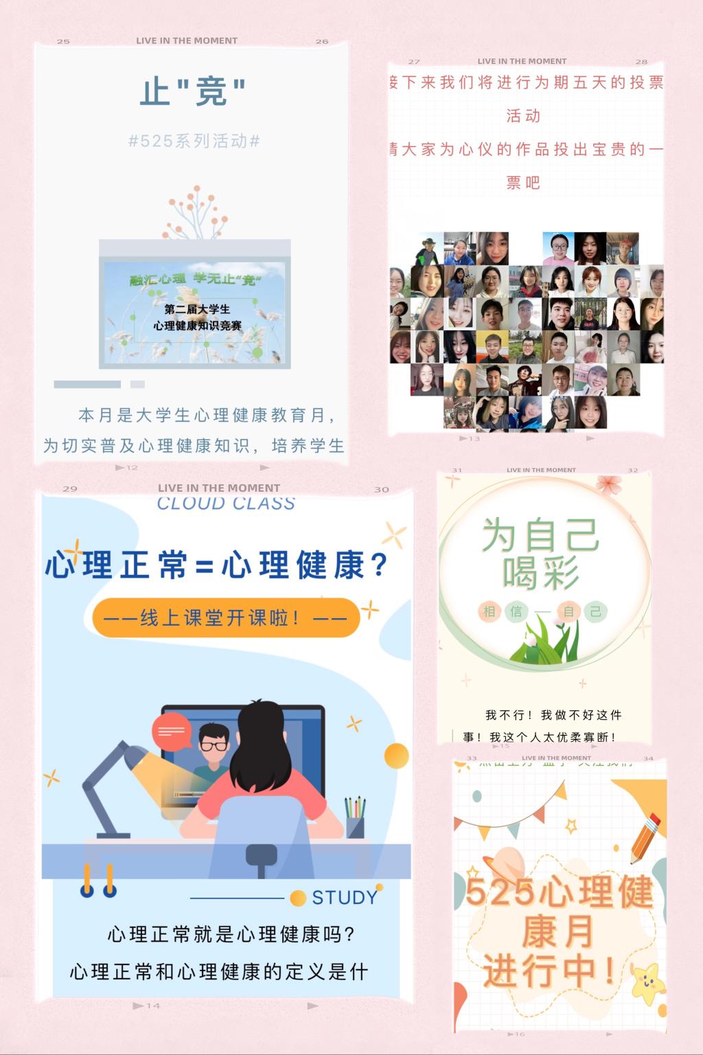 此次“5.25我爱我”大学生心理健康教育月系列活动,充分运用了大学生心理健康微信公众号、QQ群和微信群等网络平台,在“云”端让学生们积极参与到活动中来,拉进了师生距离,传递了关爱自我、携手互助的积极力量。