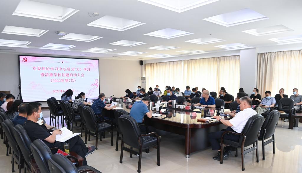 6月14日,bat365在办公楼第五会议室召开了党委理论学习中心组(扩大)学习暨清廉学校创建启动大会。党委书记王新淮主持会议,全体党委委员、纪委委员、各党总支书记、各部门负责人参会。