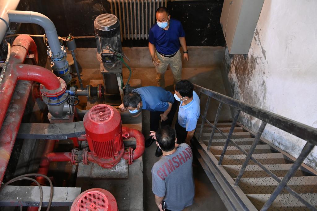 近期我省某高校因水质问题引发的安全事件警醒着我们,为推进“安全生产月”活动,提升校园安全大检查大整治大提升专项行动,吸取事件教训,有效遏制重特大安全事故,6月21日上午,校党委委员、副校长冯东元带队,后勤保障部、安全保卫部相关人员组成了安全检查组一行在南、北校园水泵房、发电机房、配电室、消防中控室、食堂、家属院住宅区、6号公寓顶层的消防设施等重点要害区域进行了安全专项检查。