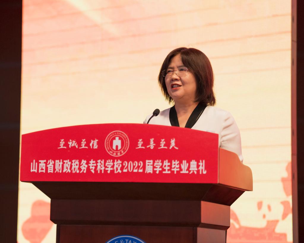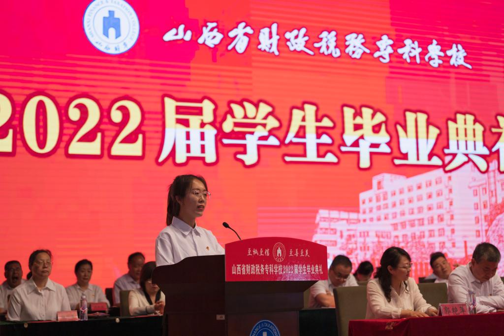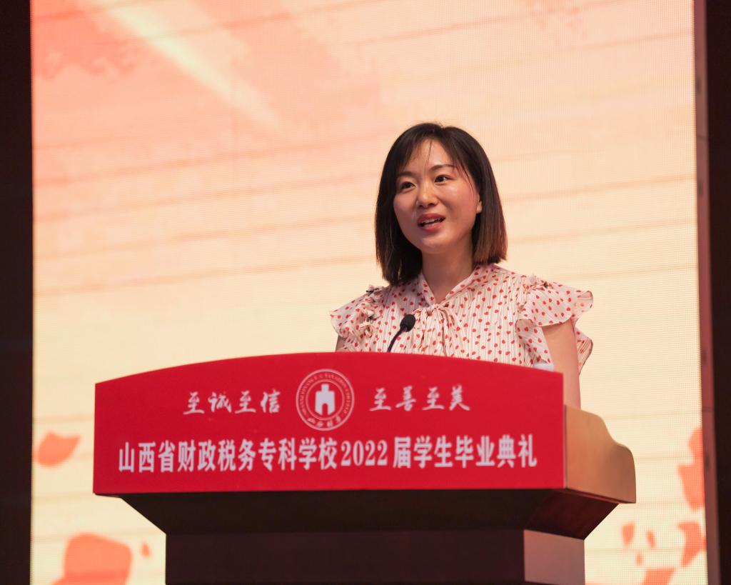 商学院院长王方教授、信息学院张瑞老师分别代表全体教师和辅导员为毕业生送上美好祝愿。财税学院2019级财务管理二班杨玉婷代表2022届全体毕业生表达了对母校的感恩之情。