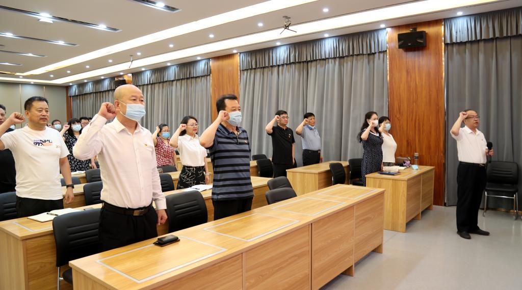 为庆祝中国共产党成立101周年,机关党总支7月1日在1号教学楼103教室举行“喜迎二十大 奋进新征程”主题党日活动。活动由党总支书记高国拴主持,校党委书记王新淮、副书记杨晓明、党委委员陶莹、郭艳萍以普通党员的身份参会。